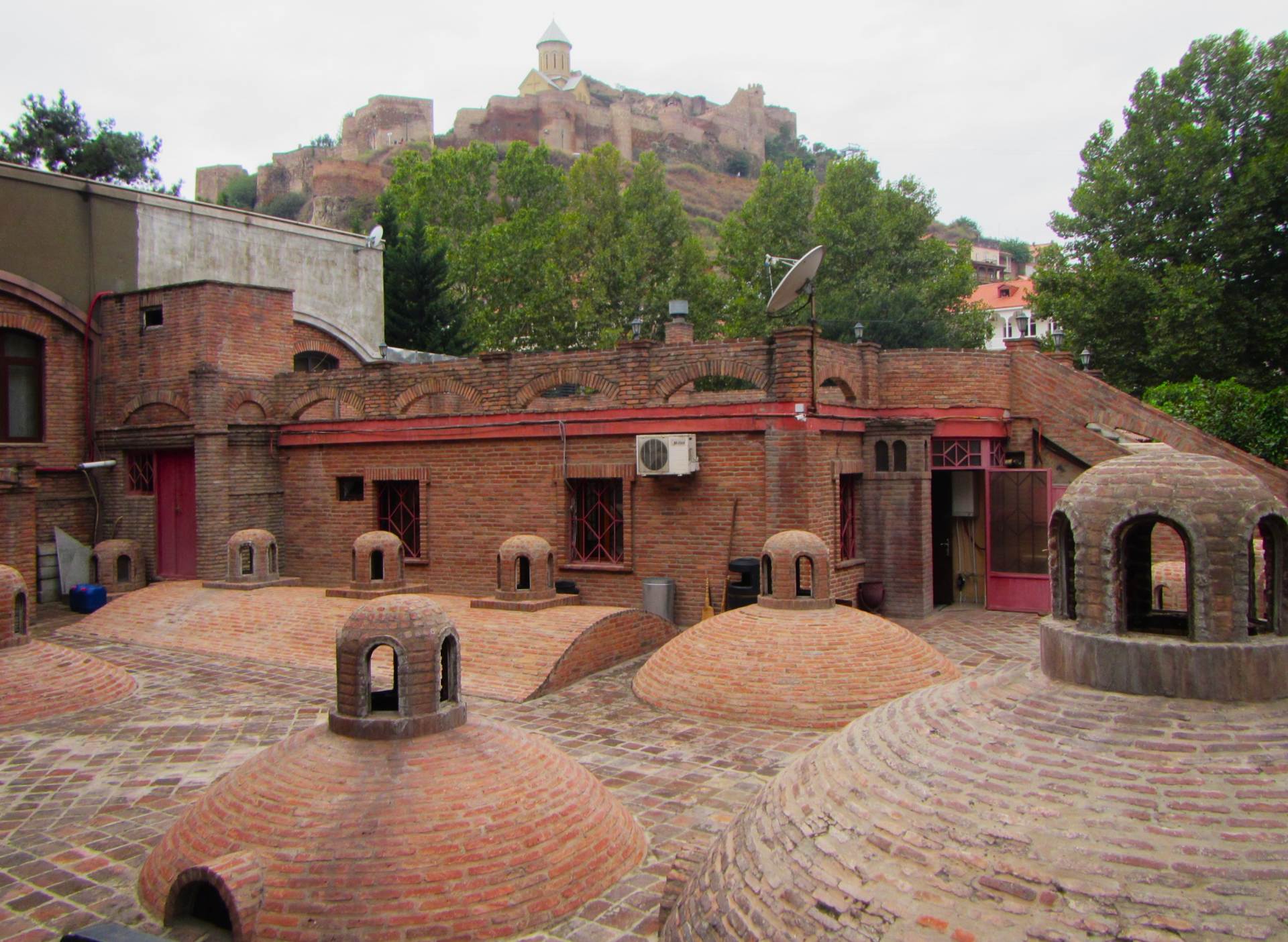 旧市街の温泉街にはオスマン帝国時代の影響を受けた独特な丸天井が並んでいます。東洋と西洋が融合したような不思議な景観です。「アバノトゥバニ(硫黄温泉)」と名づけられた一帯には個室風呂を備えた入浴施設が軒を連ねています。小さな浴槽がひとつあるだけの個室が大半ですが、このときは、温泉と湧水の2浴槽を備えた大きめの個室が空いていました。硫黄臭の漂う湯がかけ流しの本格的な温泉です。浴槽が大きいため手足を伸ばしてゆったり浸かれます。首都にあるホテルに投宿後、すぐにひとっ風呂浴びて旅の疲れを癒せる国はなかなかありません。