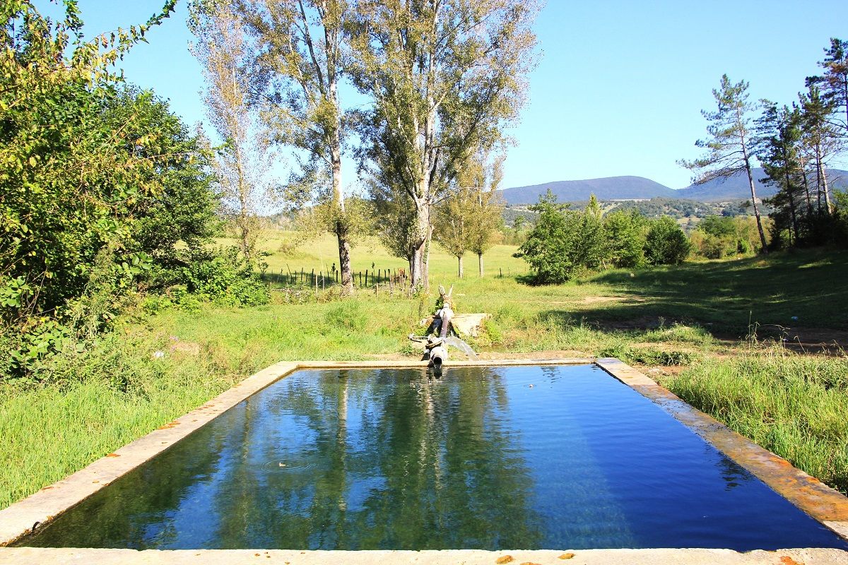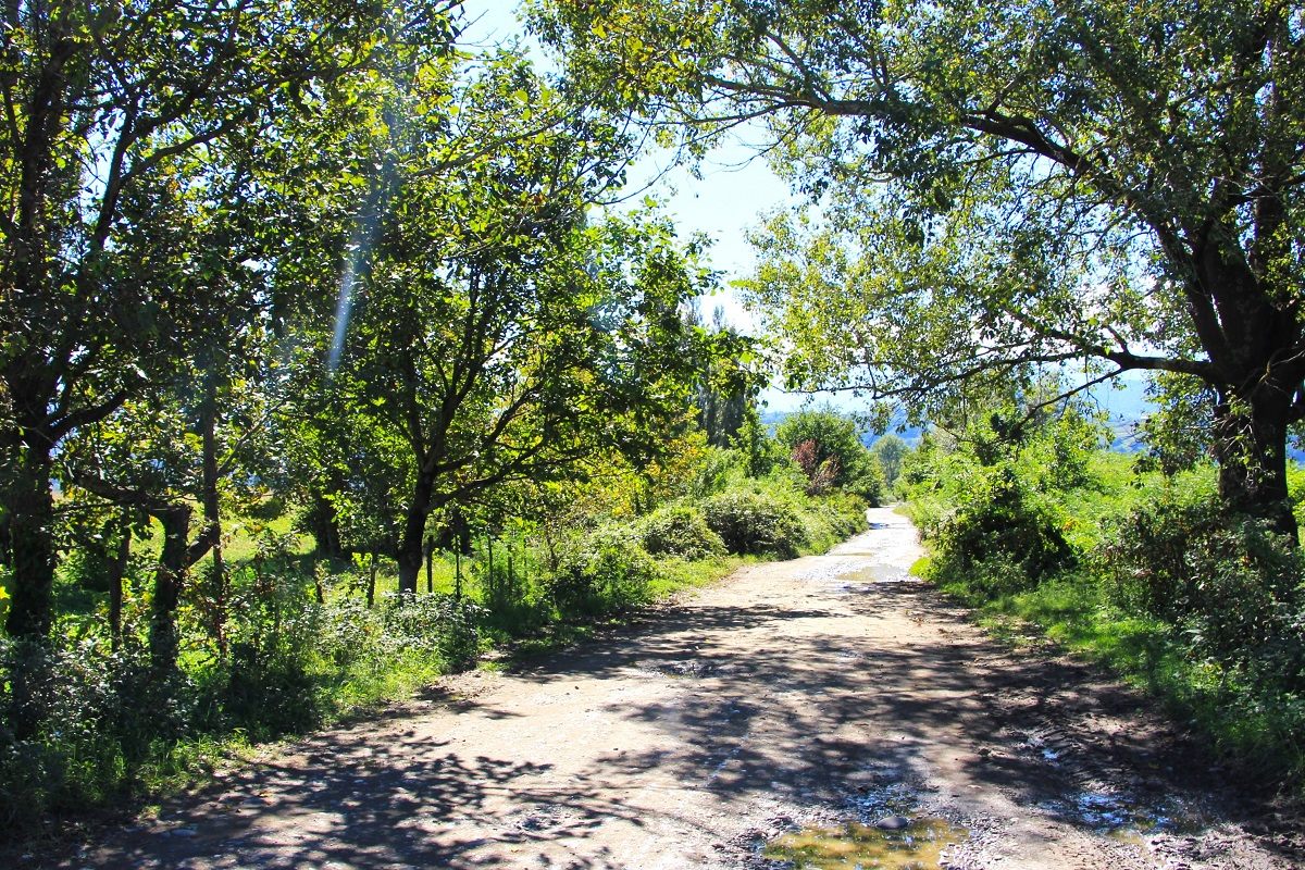 人家の並ぶ細い通りを抜けると、開放感のある露天風呂がありました。何の変哲もない長方形のプールですが、35~36℃の豊富な源泉がかけ流しです。雲ひとつない青空の下で草原や木々を眺めて浸かれます。ジョージアの温泉の印象に新たな1ページを与えてくれる素朴な温泉です。