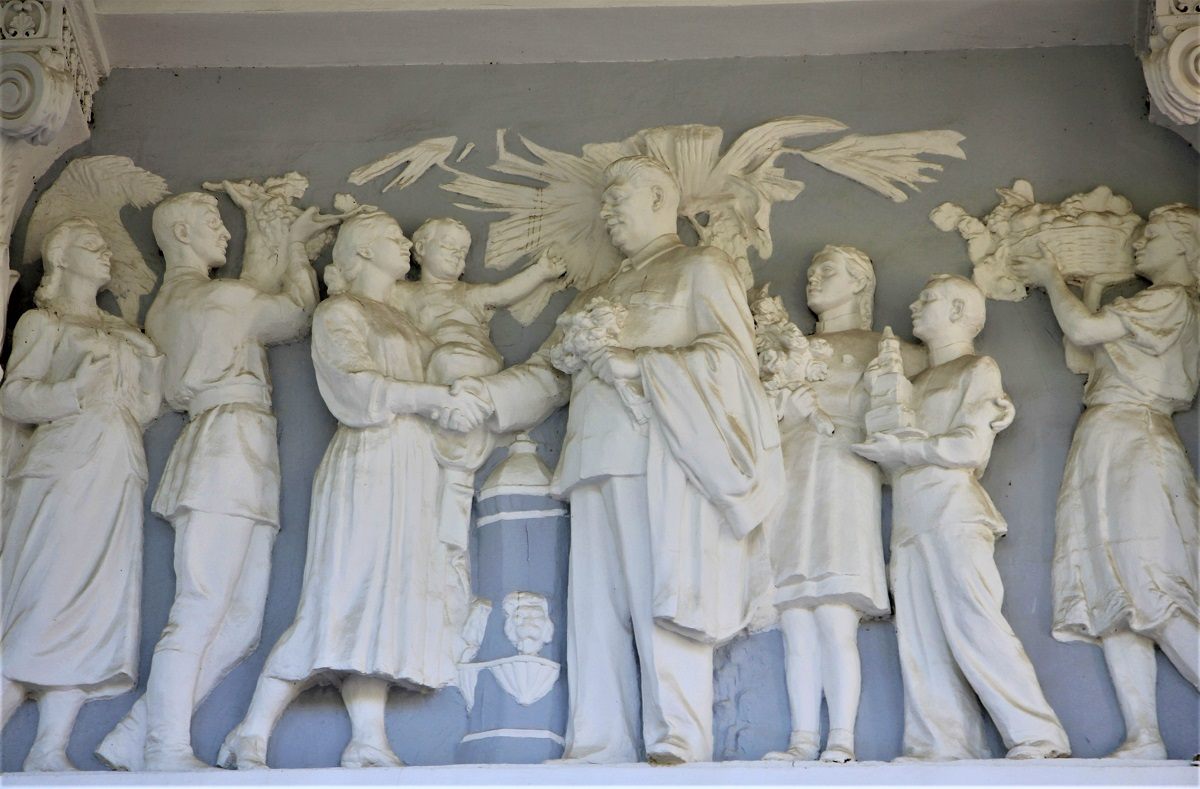 翌朝は「No.6」という名前の施設で日帰り入浴を楽しみました。旧ソ連時代の施設を改装したそうで、宮殿のように美しい建物です。建物正面の上部には、なんとスターリンが人々に囲まれているレリーフがありました。彼はジョージアの出身で、チャルトゥボの温泉を何度も訪れたそうです。