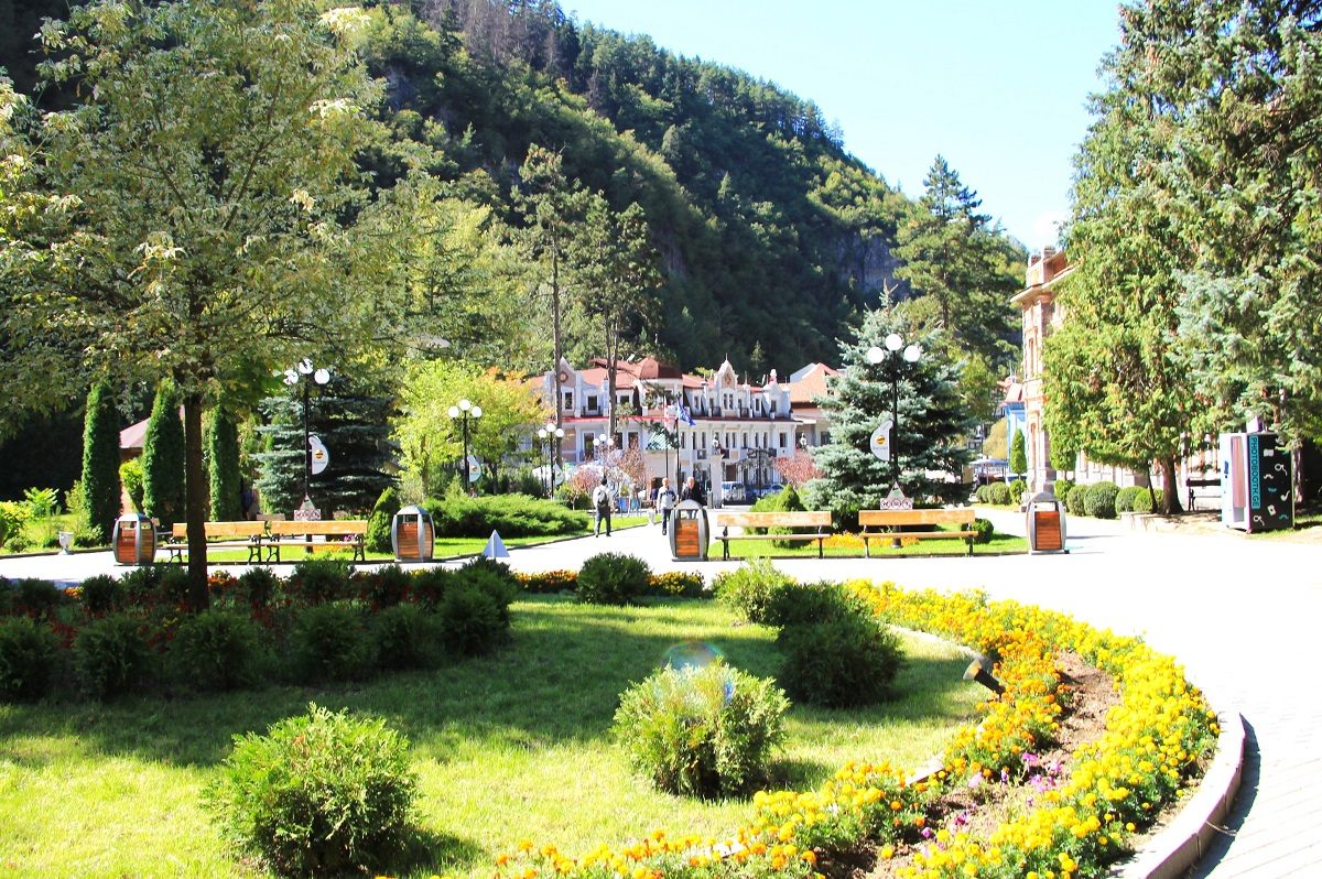 あとは一気にボルジョミへと向かいます。ボルジョミはジョージア有数のミネラルウォーターの産地で、美しい公園を中心にヨーロッパ風の温泉街が発達しています。飲泉が主体の温泉地で、ドイツやチェコの温泉地と似た雰囲気です。