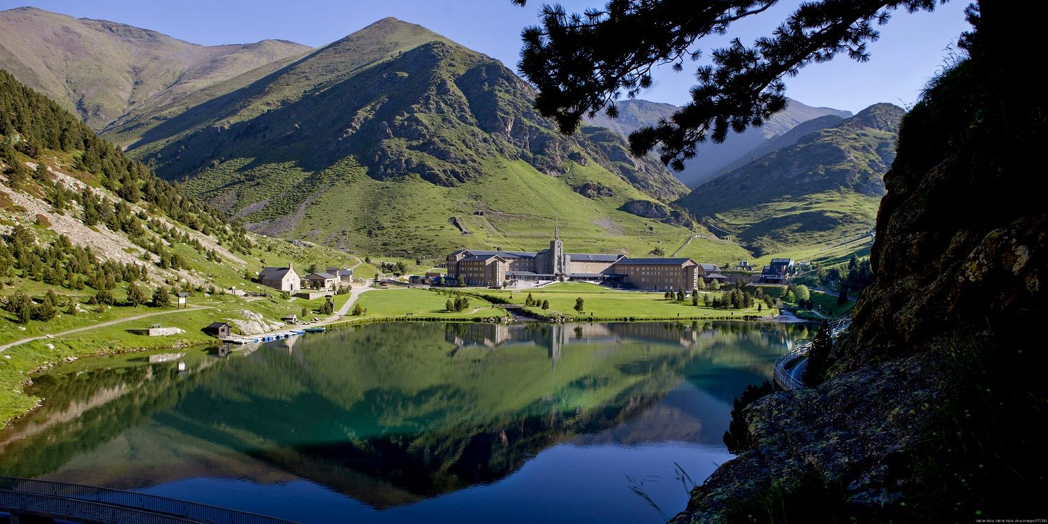 プッチサルダーから山道を南東へ進み、峠を越えてリベス・デ・フレセルへ。川沿いの並木道が美しいこの町は、夏はハイカー、冬はスキー客でにぎわう山岳リゾート地。ここからフランス国境に近い標高約2000mのヌリア渓谷まで、ラック式の登山鉄道が運行しています。ピレネーの山々に囲まれ、緑の草原に青い湖が広がるヌリア渓谷は、まさに天空の楽園。湖畔でハイキングやピクニックを楽しんだり、ボートクルーズや乗馬などのアクティビティを体験したりと、大自然のなかでリフレッシュできます。