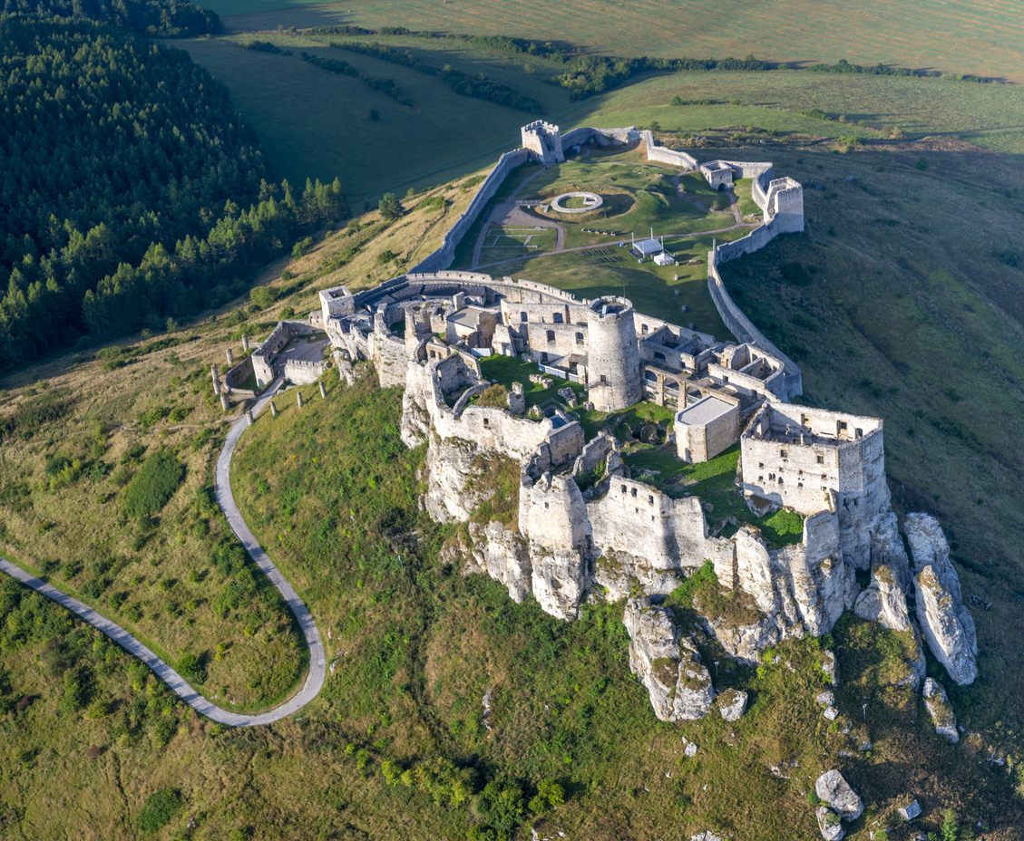 スロヴァキアの首都ブラチスラヴァから約400km離れた、草原地帯にそびえるスピシュ城。1209年にタタール人(モンゴル人)の襲来に備えて建設された大要塞で、中欧ヨーロッパ最大級の大きさを誇っていたといいます。当初はロマネスク様式で建設が始まったのですが、その後、ルネッサンス、バロック様式と増改築を重ね、強大な城となったものの、1780年の火災で焼け落ちてしまいました。現在も中庭を取り巻く城塞、塔、礼拝堂などの遺構が残されています。
