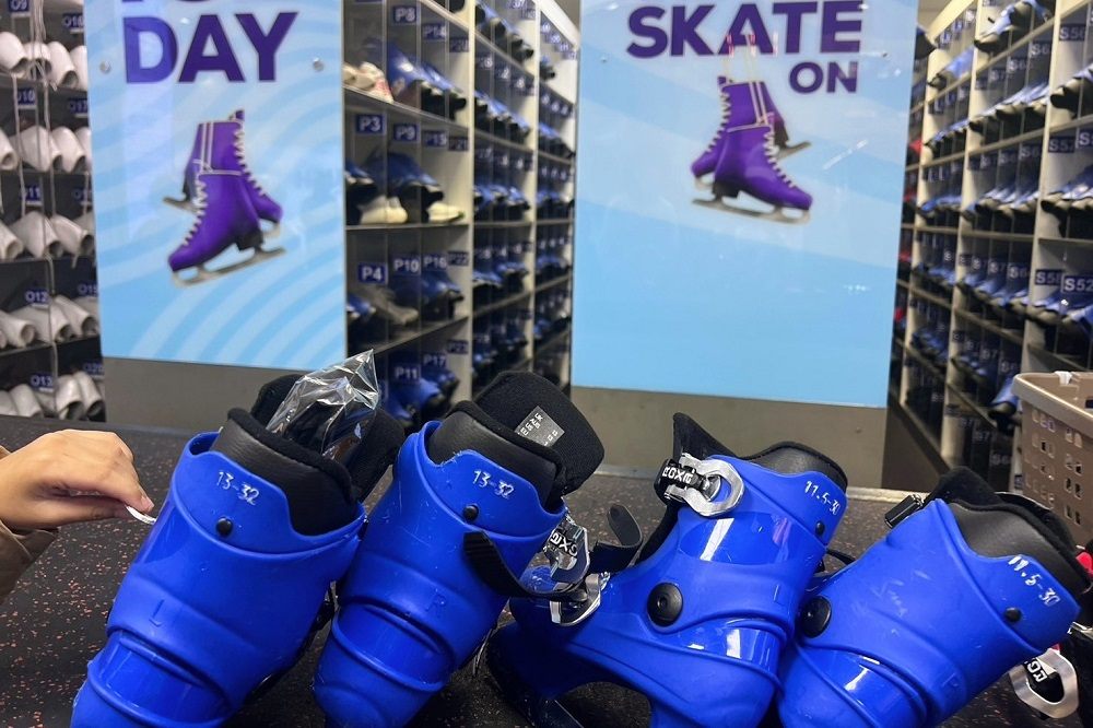スケート用のブーツをレンタルすると靴下も一緒についてくるので、手ぶらで大丈夫。さすがに少し冷えるので服装は長袖長ズボンがおすすめです。