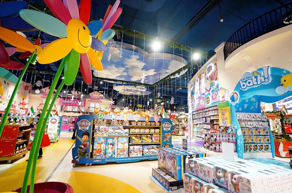 モールといえば、ショッピング。ドバイモールにはおもちゃ屋もたくさん。なかでも、ドバイ最大級のおもちゃ屋がイギリス発の「Hamleys(ハムリーズ)」! まるでテーマパークのような店内には、万国共通の人気キャラクターグッズやベビーグッズ、そして遊び場もあります。