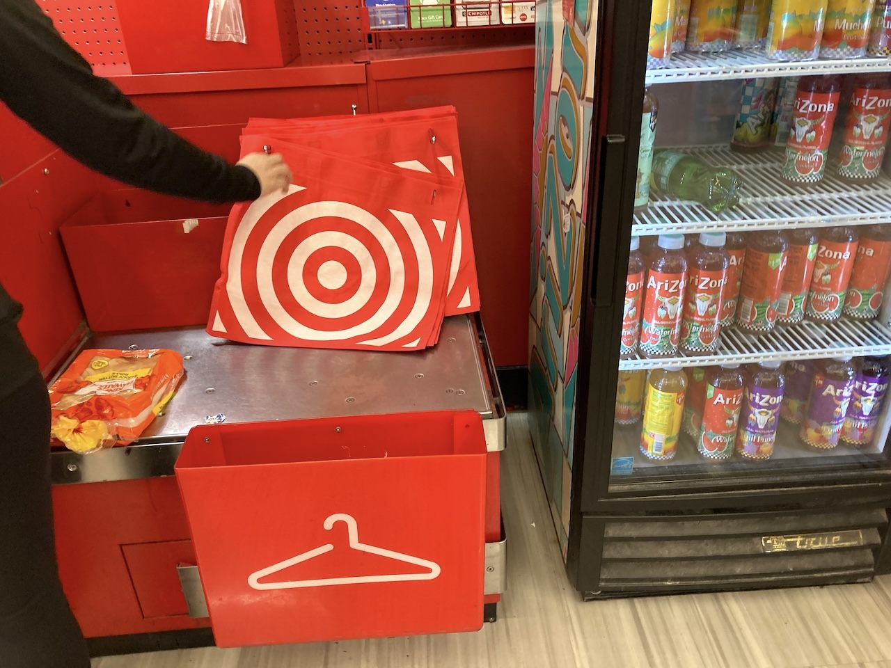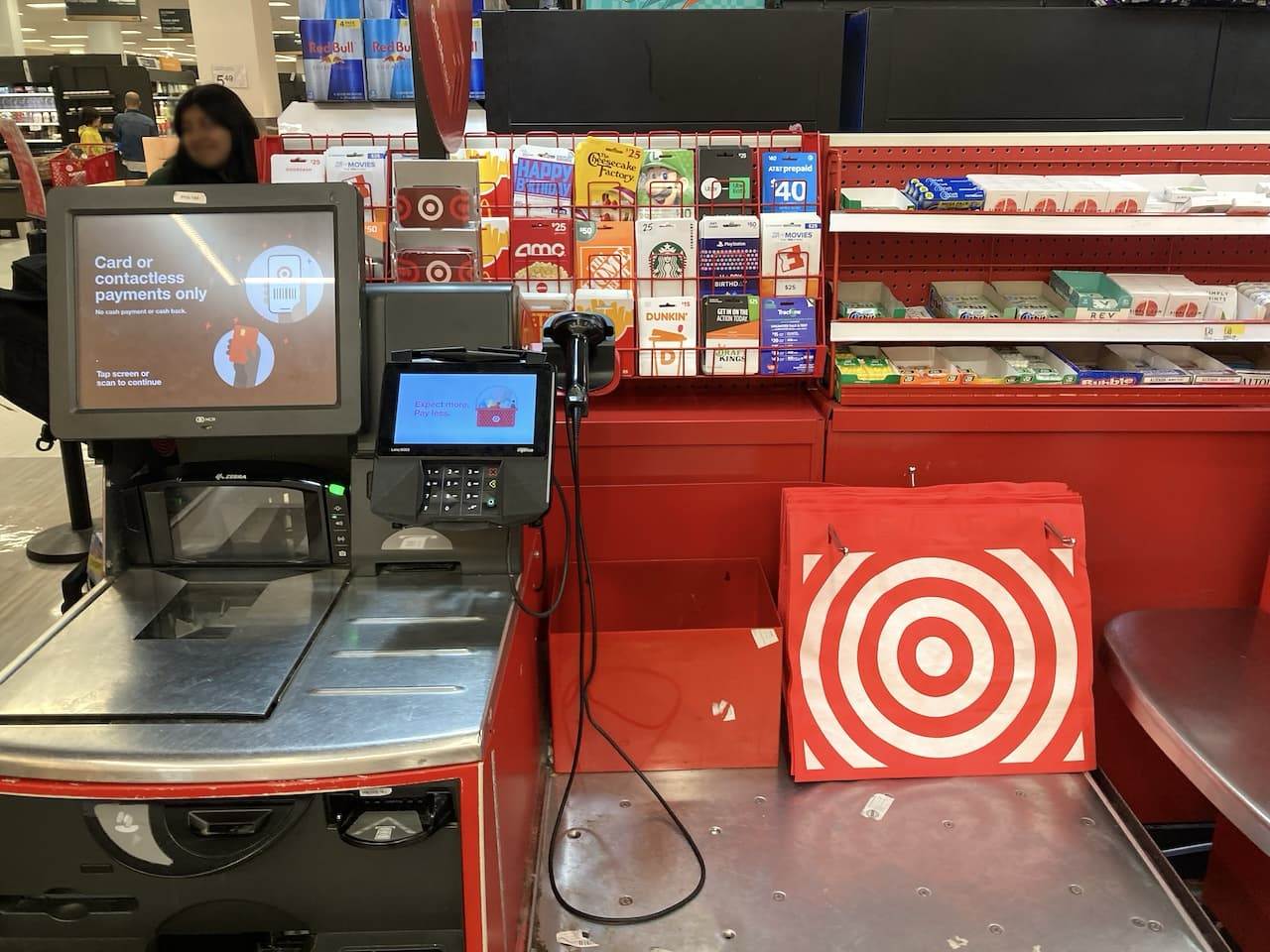 ターゲットでは、人件費削減のためアメリカで増えているセルフレジが主流。ただし、セルフレジの使い方がわからない、現金で支払いたい、購入商品が多い、アイテムが大きいなどの買い物客用に、有人レジもあります。