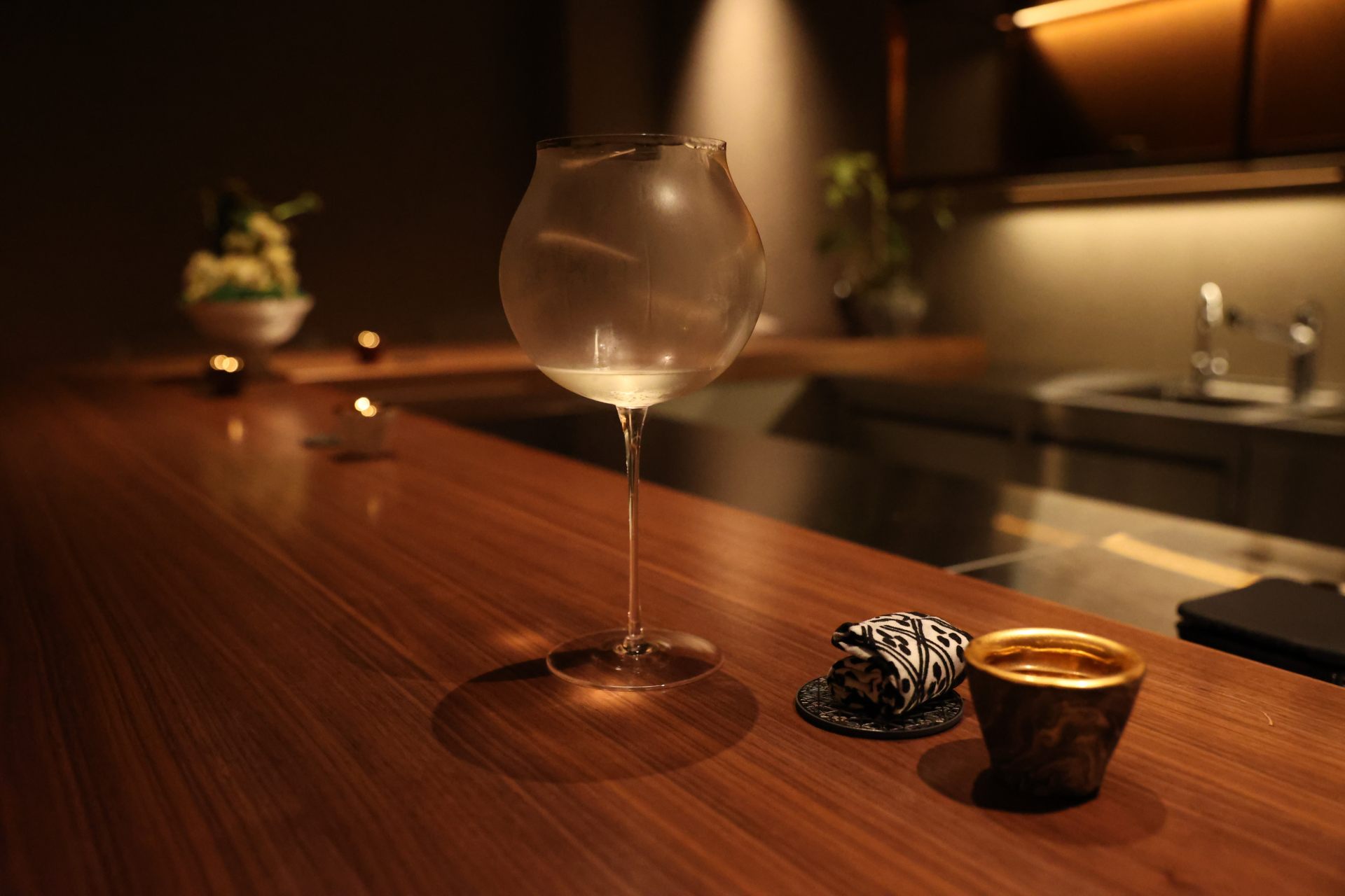 この日、グラスでいただいたのは「回嚮-echo-」。香りを最大限楽しむため、特注グラスにリンス(グラスの内側にお酒を触れさせる)された状態で提供されます。よく冷えた状態から温度が上がるにつれ、味と香りも膨らみを増し、その名の通り口の中でエコーしていくかのような味わいが印象的でした。