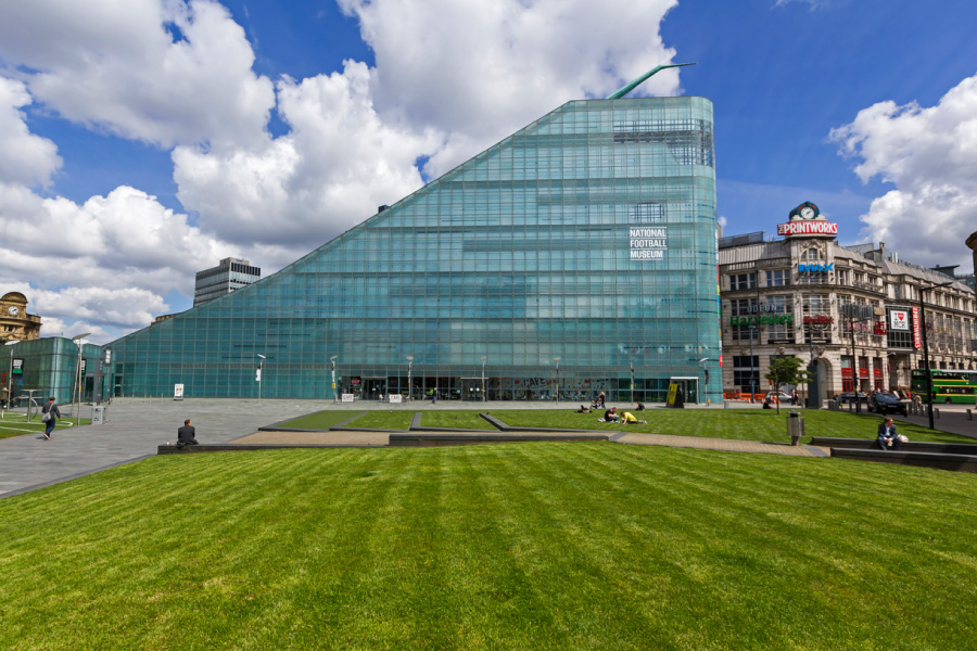 フットボールの歴史と情熱を体感できるのが国立フットボール博物館。館内には、イングランドのフットボールの歴史やアイテムを中心に、現存する最古のFAカップトロフィーや世界初の国際フットボールシャツなどが展示されている。子どもが体験できるアクティビティも充実しており、幅広い年齢層が楽しめる。ギフトショップでは、フットボールをテーマにした記念品を購入したり、カフェでドリンクや軽食を楽しんだりすることもできる。