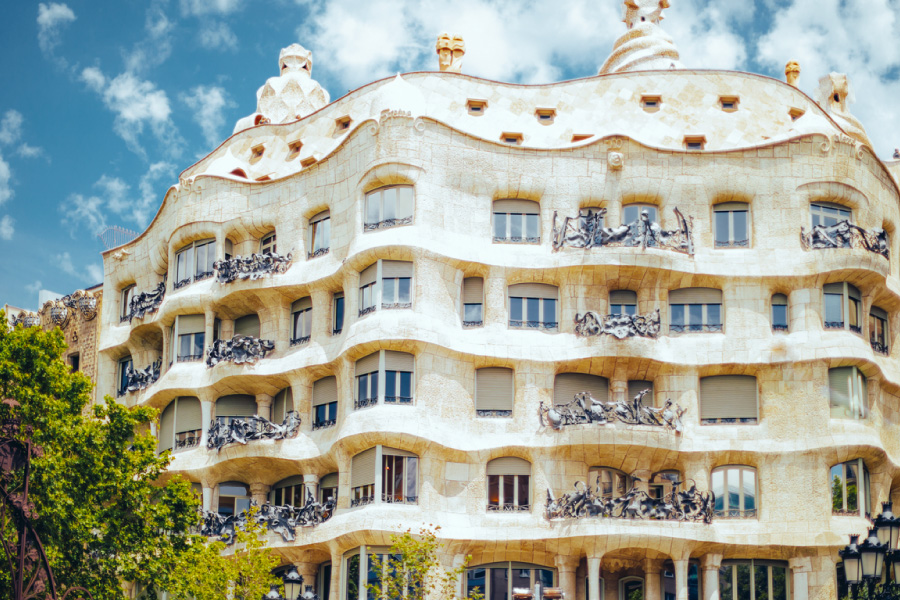 世界遺産のカサ・ミラは、ガウディが手がけた最後の民間建築とされている。山をテーマにした建物で、波打つような曲線を主調としており、その独特の形状から石切り場という意味のラ・ペドレラとも呼ばれる。内部は、屋上テラスや居住スペースの一部が見学可能。屋根裏にはカサ・ミラの資料が展示されている。