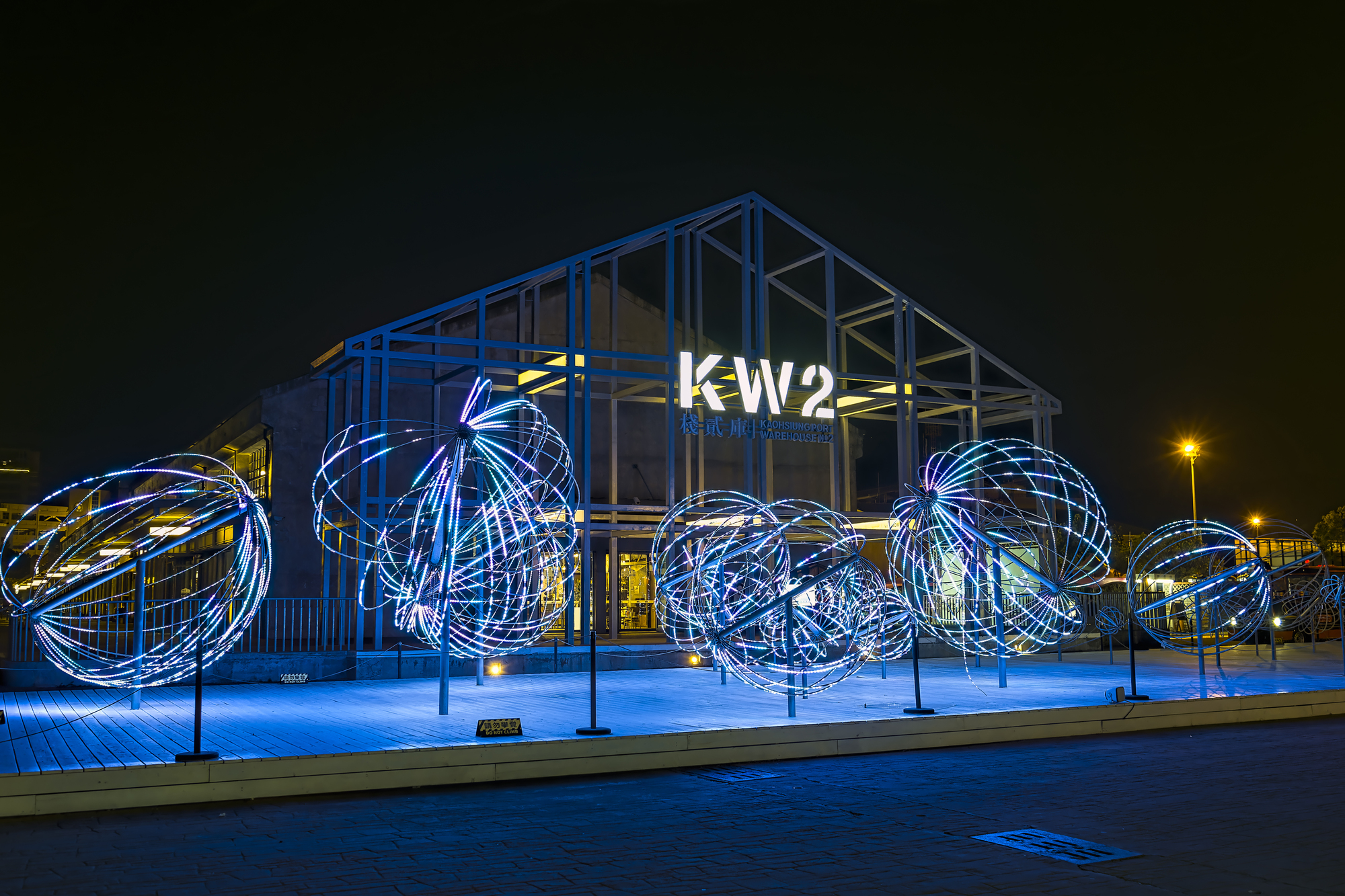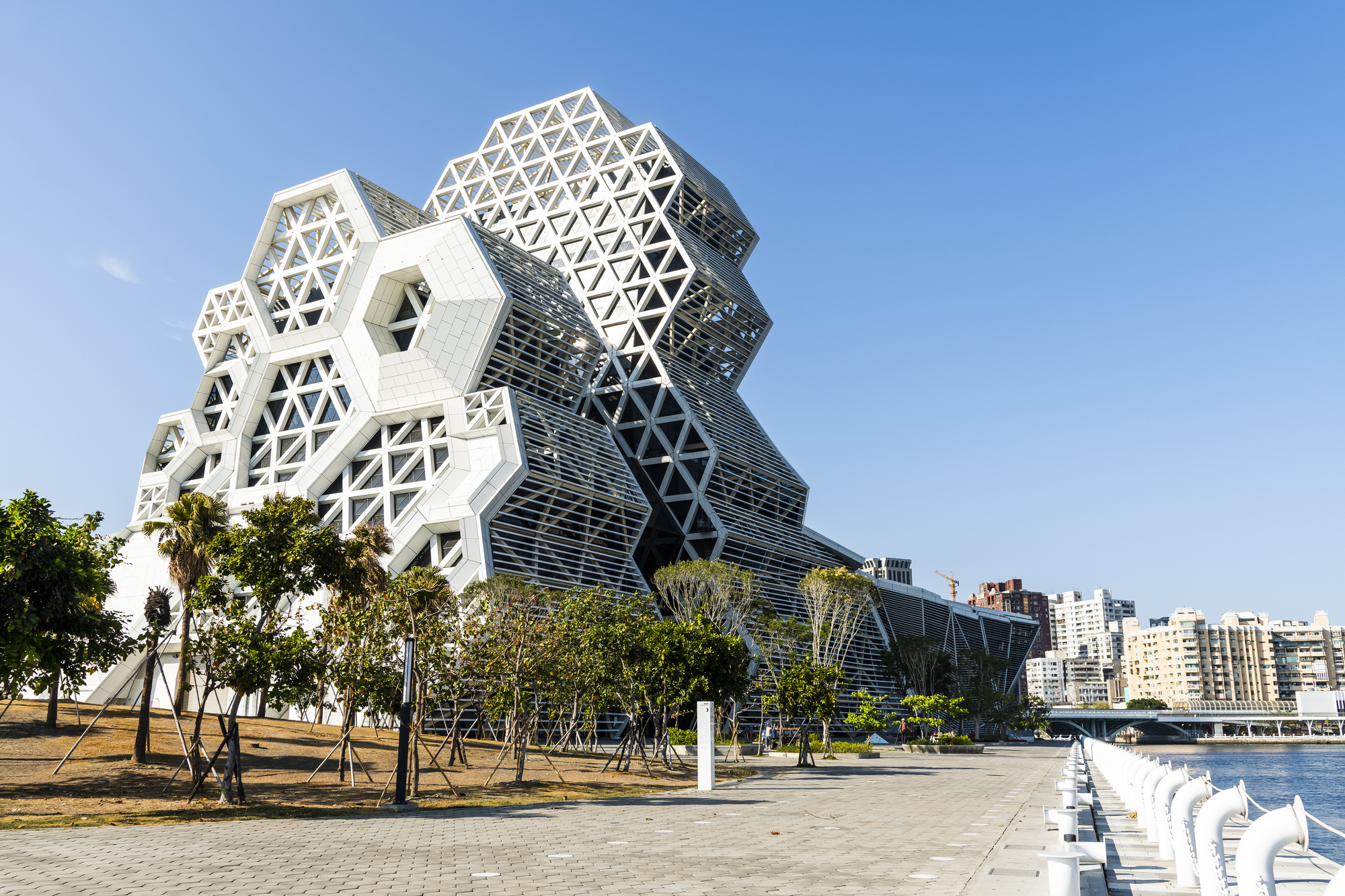 「高雄流行音楽中心」は、コンサートホールやイベントスペースを有する音楽業界発展のための複合施設で、国内外のアーティストがライブパフォーマンスを行う場としても有名。近未来的なデザインの建物は、夜になるとライトアップされ、周囲の景観と調和しながらもひときわ目を引く存在。また、屋外ステージからは、高雄港の夜景を背景に音楽を楽しむことができる。