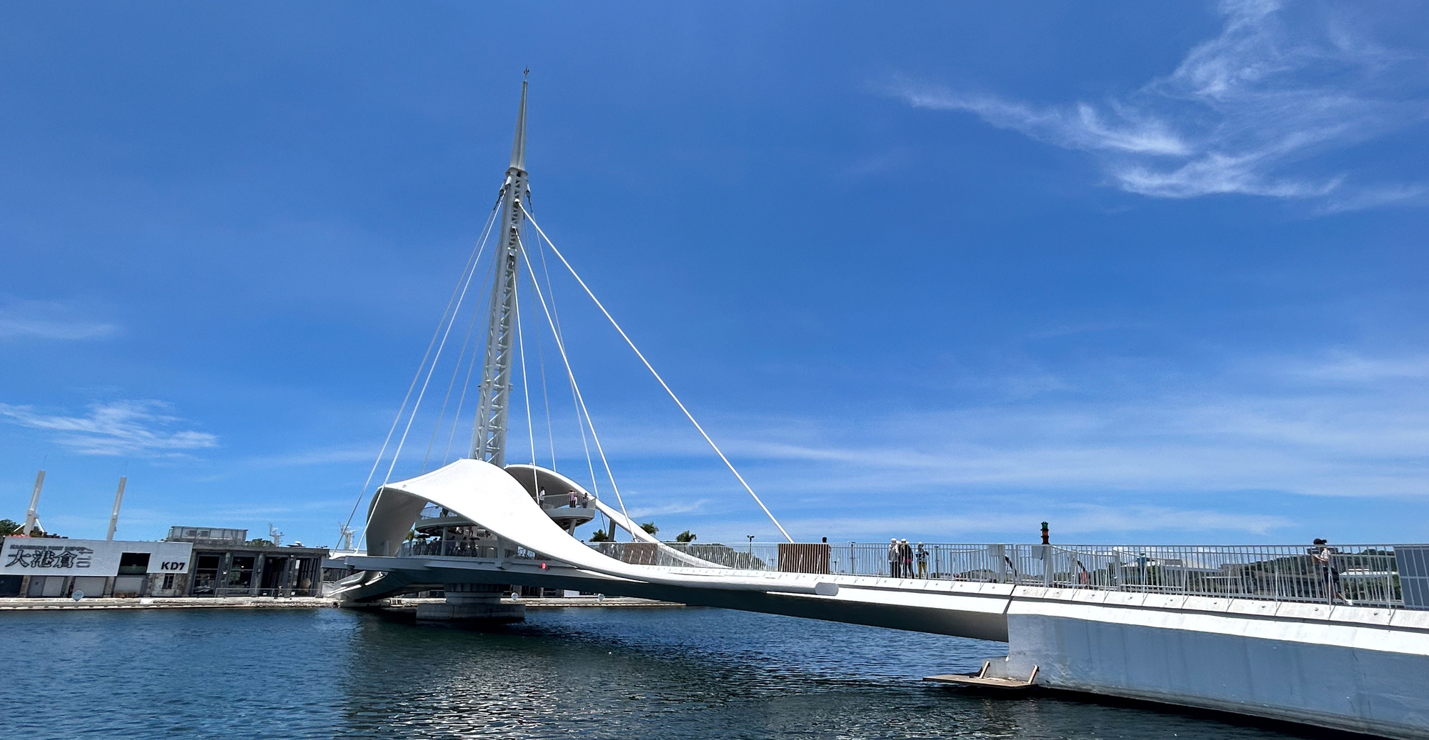 全長110mの大港橋は、なだらかな曲線が印象的な橋。橋の中央には展望台があり、高雄港を望むことができる。この橋は、アジア最長の旋回式可動橋であり、船を通すために水平に旋回する構造になっている。毎日15:00、30分間ほど旋回するため、ぜひ見学してみては。