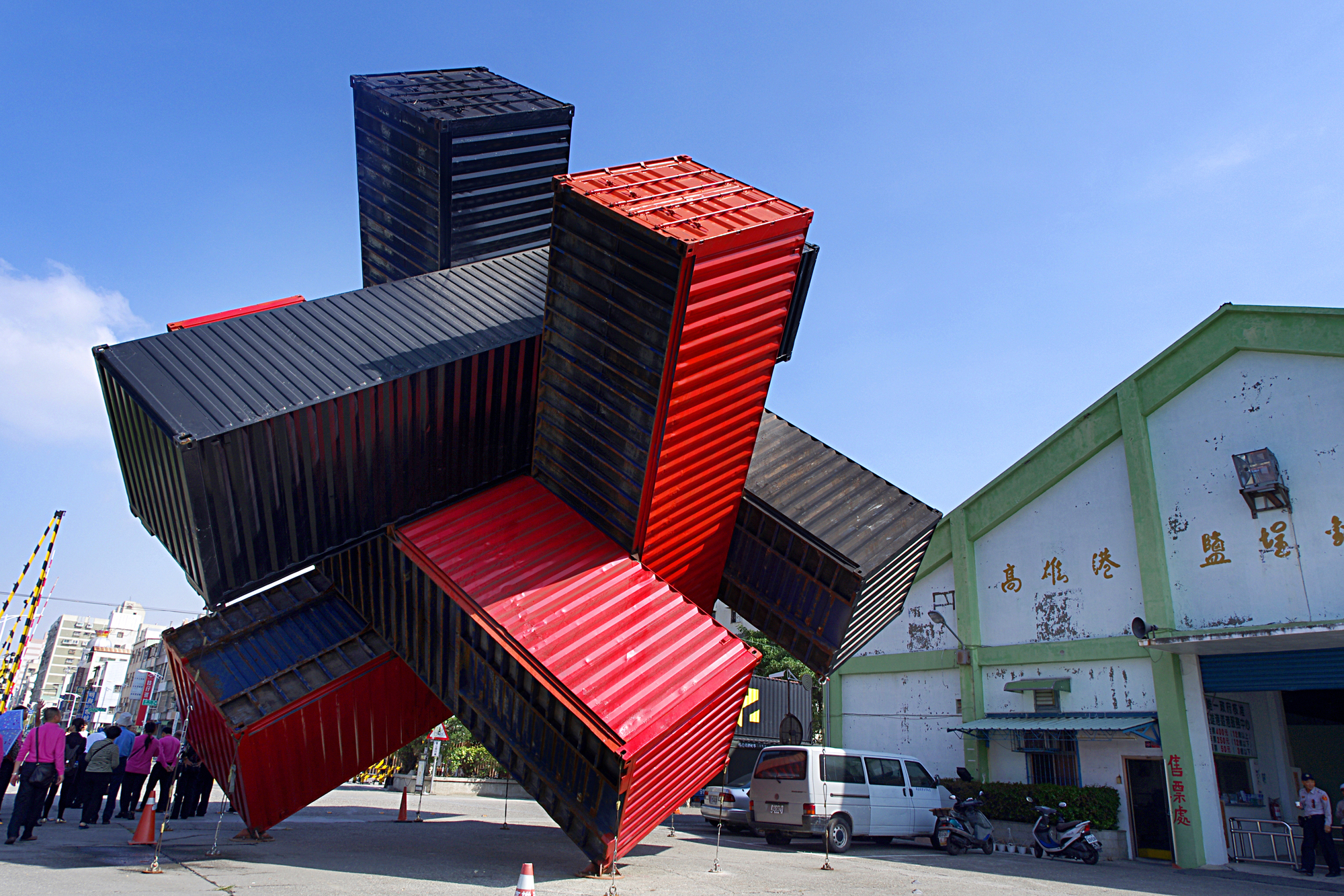 駁二藝術特區は、港沿いにおよそ1km続く倉庫群をリノベーションした施設。カフェやショップ、ギャラリーなどが集まっており、壁画やオブジェなどのパブリックアートもたくさんあるので写真映えするところも多い。エリアは、大勇倉庫、蓬萊倉庫、大義倉庫の3つに分かれており、大義倉庫にはカフェやショップが充実している。大型のパブリックアートを見るなら大勇倉庫へ。