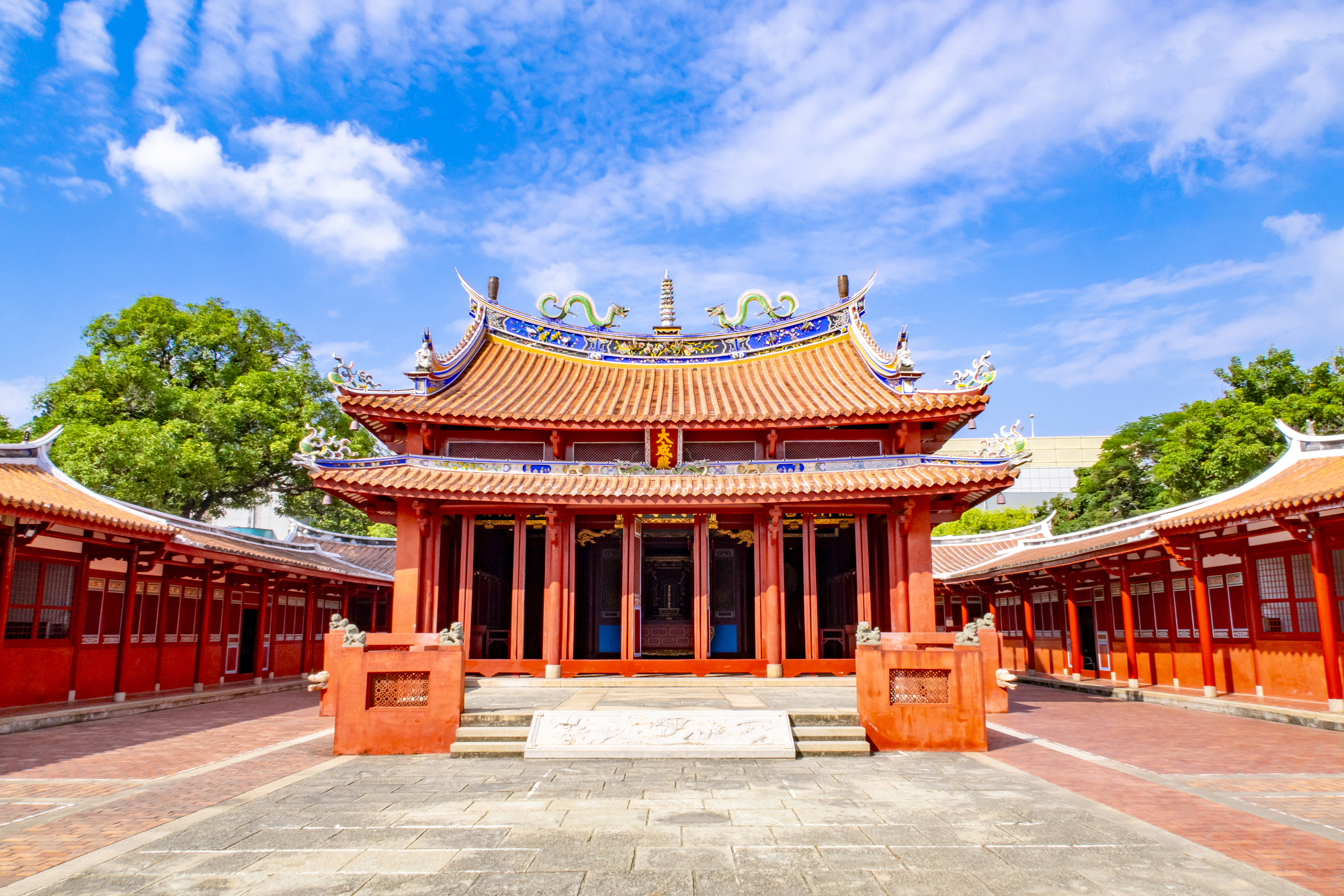 台南の孔子廟は、孔子を祀る廟としては台湾で最も古く、「至聖先師」と称される孔子の精神を敬う場所。1675年に創建されたが、その後何度も修復が行われその姿を残している。廟内にある「至聖先師牌」は台湾の教育の象徴ともいえる存在であり、敷地内にはその他にも歴史的価値が高い彫刻や石碑が点在している。また、孔子廟周辺には緑豊かな庭園が広がり、静かな散策コースとしても楽しめる。