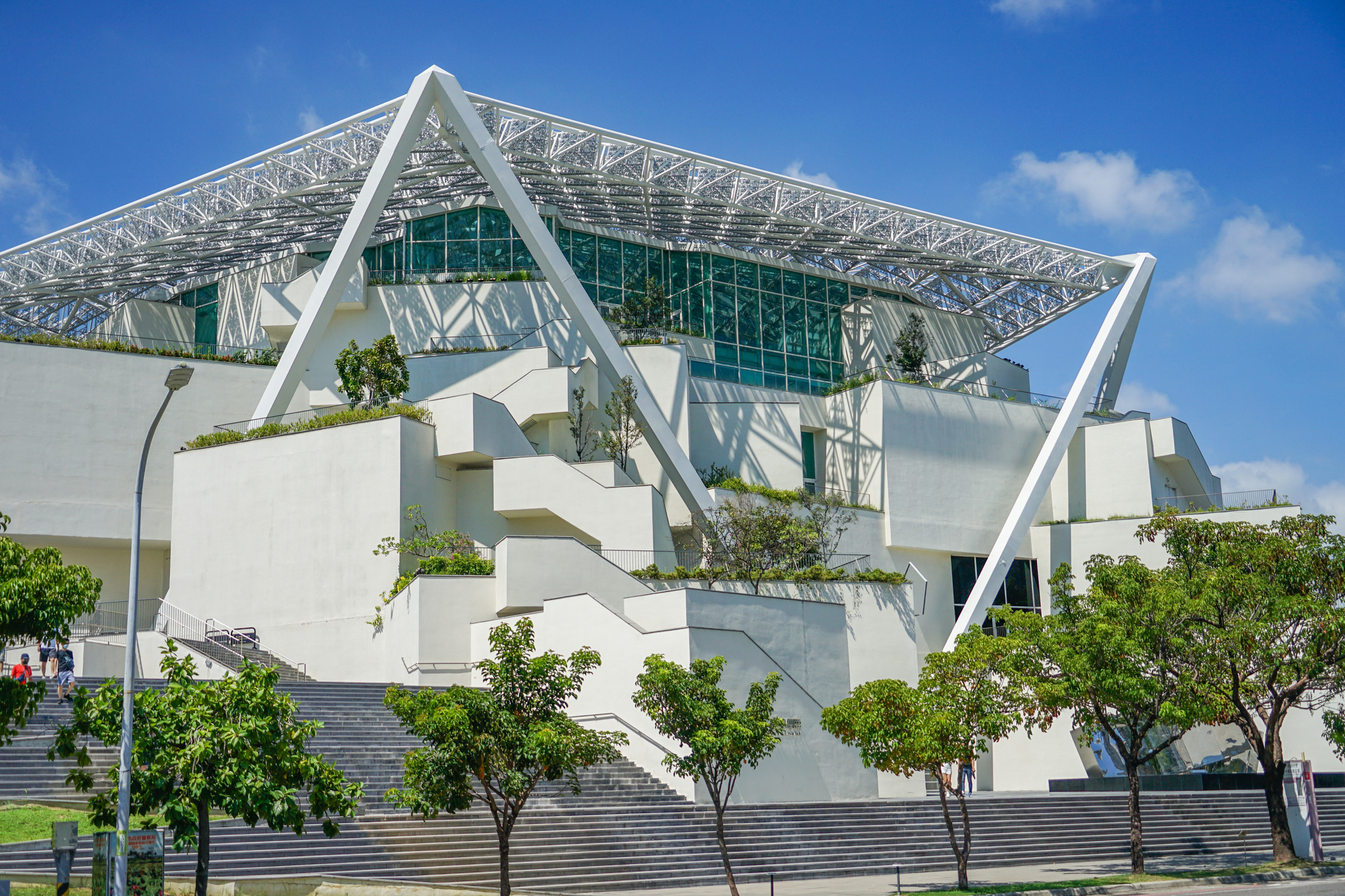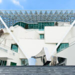 台南市美術館2館は、モダンな建物が印象的な現代アートの美術館。建物は、上空からみると鳳凰花をイメージした五角形になっている。