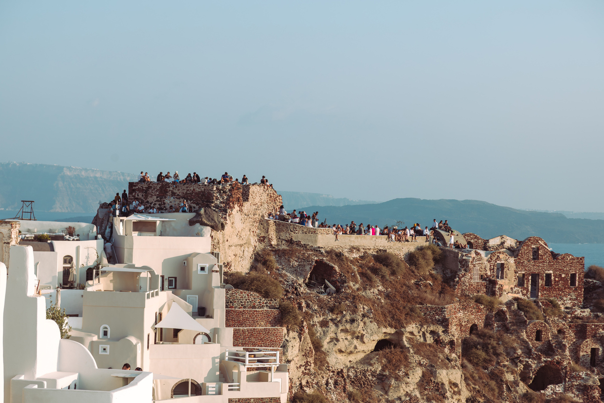 サントリーニ島(ティラ島)の夕日を臨む絶景スポットといえば、アギオス・ニコラオス要塞が外せない。ヴェネツィア人によって14~15世紀に建てられた。城跡はほとんど残っていないが、その立地からサントリーニ島で最も美しい夕日が見れる場所として知られている。白い家々を照らしながら青い海へ沈んでいく太陽は、まさに絵画のような美しさだ。観光客に人気のフォトスポットでもあるこの場所では、日没の時間が近づくと多くの人が集まり、カメラを手にその瞬間を捉えようとする。サントリーニ島のほかの観光スポットと組み合わせて訪れるのがおすすめだ。