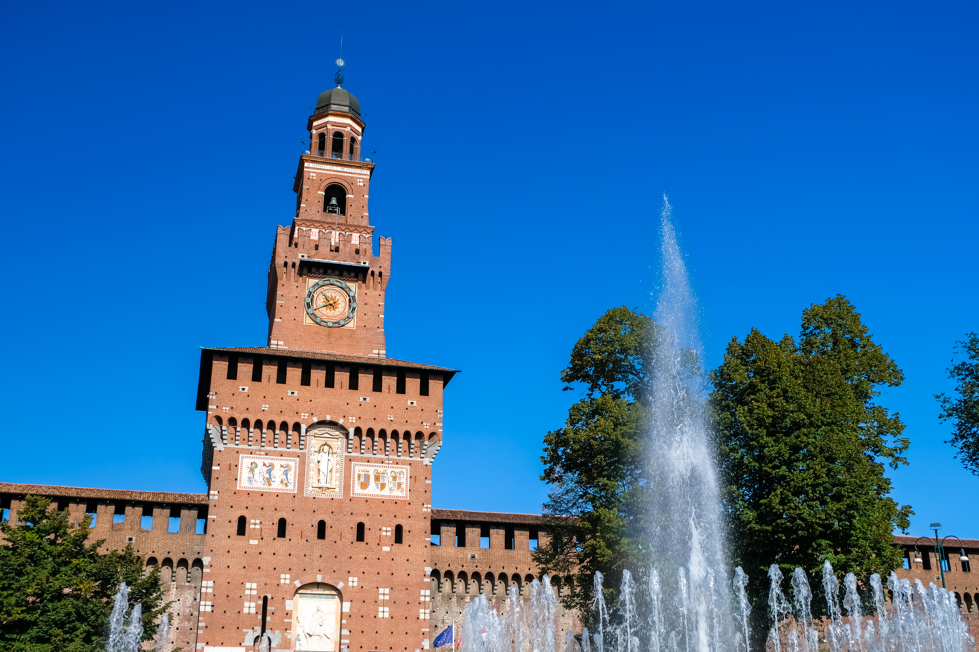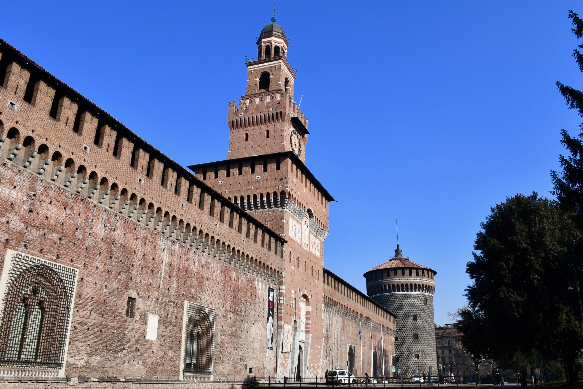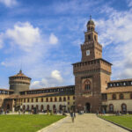 スフォルツァ城は、1450年にスフォルツァ家の居城として建てられた。ミラノにおけるルネサンス期最大の建物で、ミラノ公国を守る要塞の役割も果たしていた。かつてダヴィンチをはじめとする才能ある芸術家が集った場所でもあり、城内には複数の博物館や美術館がある。美術館に展示されているミケランジェロの傑作『ロンダニーニのピエタ』は必見。