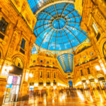 ミラノの町の中心部にあるヴィットリオ・エマヌエーレ2世のガッレリアは、ガラス天井と鉄のアーチが印象的なガッレリア(アーケード)。19世紀に建てられたもので、高級ブランドやショップ、レストランやが軒を連ねる。床にはモザイクが施されており、十字路付近にある雄牛のモザイクには、雄牛の急所部分にかかとを付けて反時計回りに3回転すると願いが叶うという伝説がある。