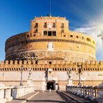 ローマのテヴェレ川のほとりに建つサンタンジェロ城は、もともとローマ皇帝ハドリアヌスの霊廟として建造されたものだが、その後、要塞や教皇の住まいなどとして用いられた。歌劇『トスカ』の舞台となった場所としても知られる。現在、内部は国立博物館となっており、武具などのコレクションが展示されている。城のテラスから眺めるローマ市街もすばらしい。