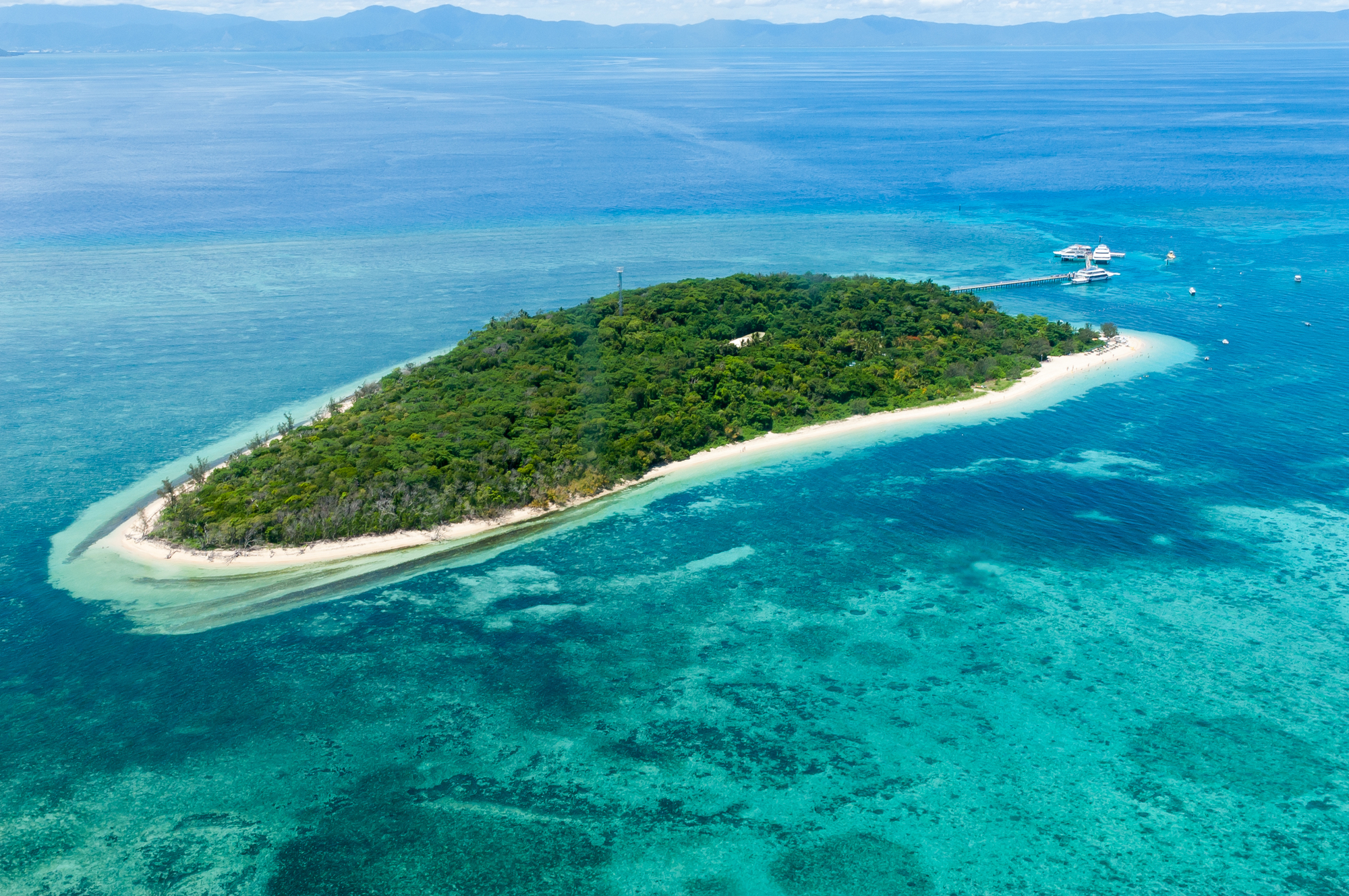 グリーン島は、ケアンズからクルーズでアクセスできる美しいサンゴ礁の島。歩いて1周40分ほどの小さな島には熱帯雨林が広がり、美しい海ではシュノーケリングやダイビングを楽しむことができる。ケアンズからクルーズを利用して日帰りで訪れるのが一般的だが、高級リゾートホテルがあるので宿泊して島の美しい自然を満喫するのもおすすめ。