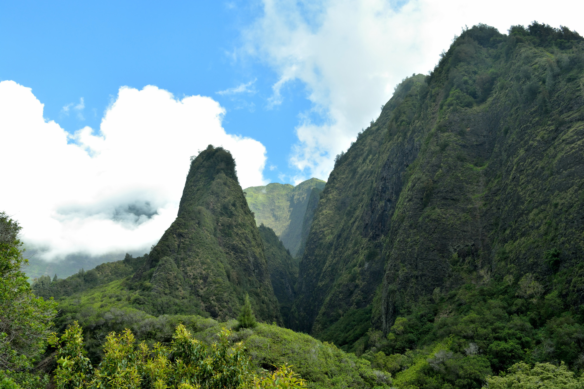 イアオ渓谷州立公園は、マウイ島の中心に位置する神秘的な渓谷で、緑豊かな熱帯の景観が広がっている。この公園のシンボルは、そびえ立つクカエモク(通称イアオ・ニードル)と呼ばれる尖峰で、その独特な形状が訪れる者を魅了する。渓谷内にはトレイルが整備されており、滝や川沿いを歩きながら自然の美しさを満喫できる。午後は天気が崩れやすく、霧や雲でクカエモクが隠れることもあるため、午前中の訪問がおすすめ。また、イアオ渓谷は歴史的にも重要な場所であり、かつてカメハメハ大王とマウイ軍の戦いの舞台となったことでも知られている。自然と歴史と神話が融合した神秘の谷は一見の価値がある。