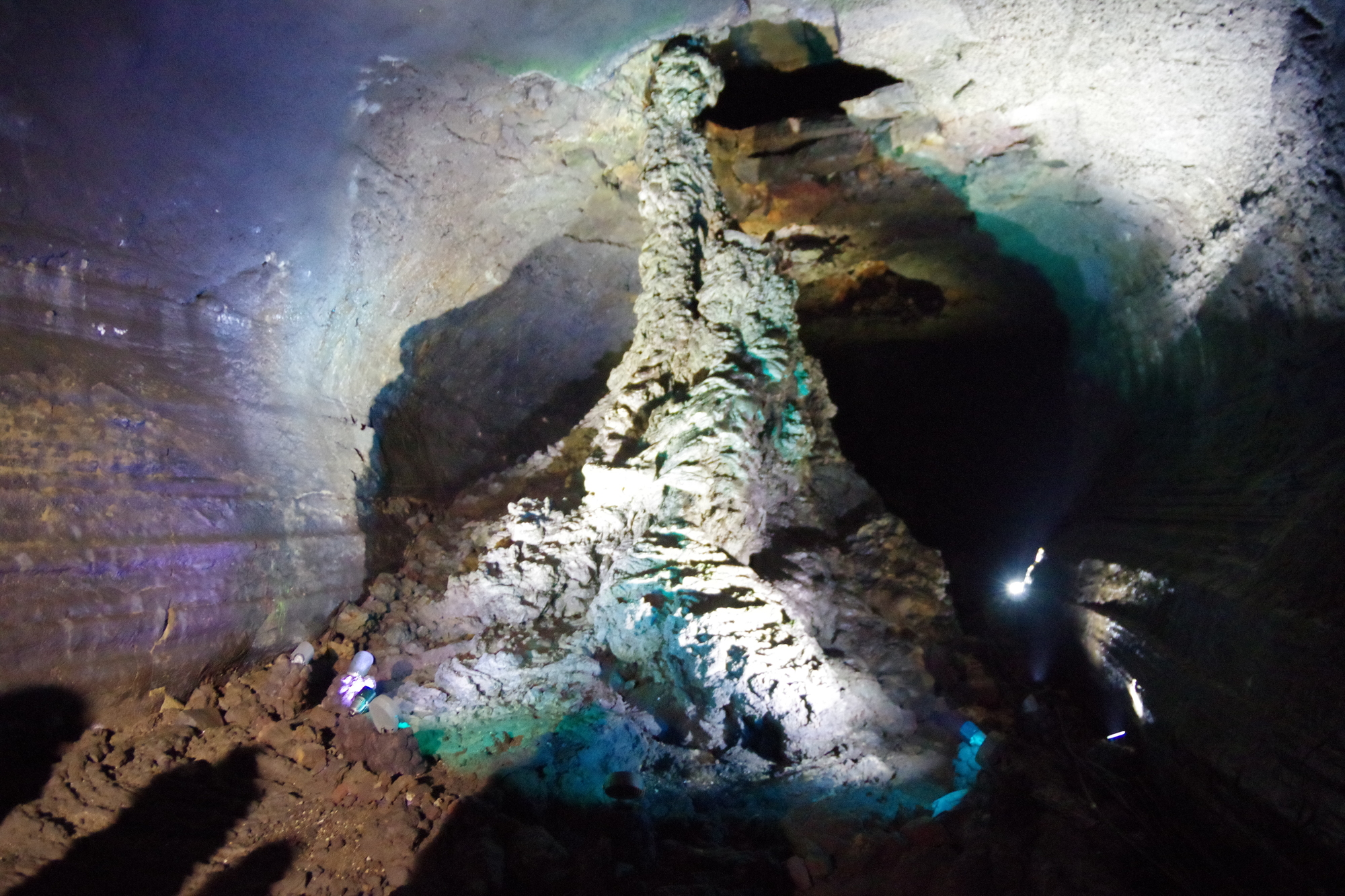 万丈窟は、火山活動によって形成された溶岩洞窟のひとつ。全長約7.4km、通路幅最大18m、高さ23mで、世界屈指の規模を誇る。溶岩鍾乳や溶岩流線、世界最大規模の7.6mの溶岩石柱など貴重な自然景観を見ることができる。溶岩石柱は、一般開放されている区画の最奥にあり、たどり着くまでに30分程度要する。