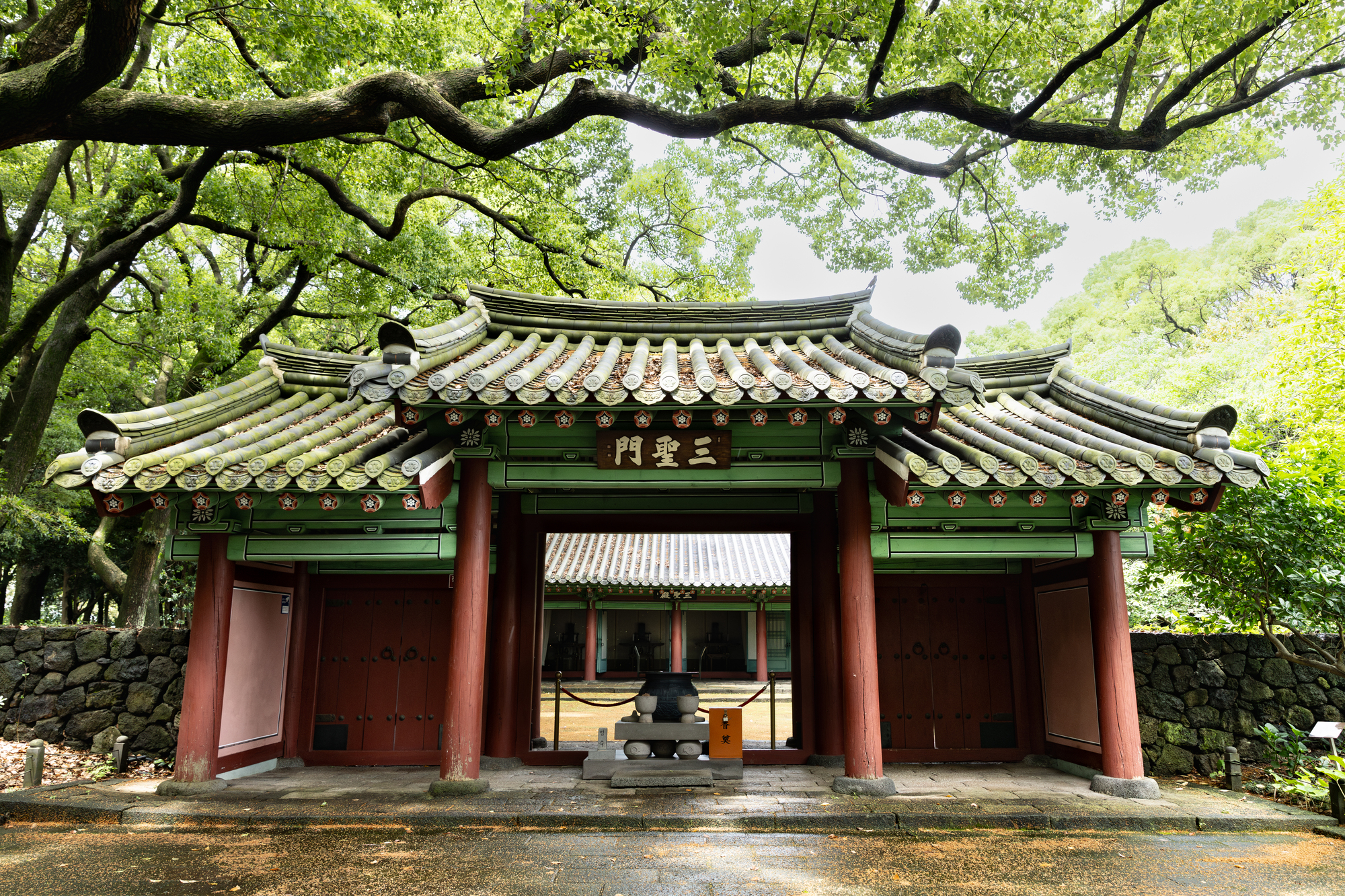 三姓穴は、済州島に伝わる神話の舞台とされる洞窟。三姓(三神人)がこの洞窟から現れ、国を創始したという伝説がある。穴は古木に囲まれ、独特の雰囲気を醸し出している。敷地内にある資料館で歴史を学ぶことができる。