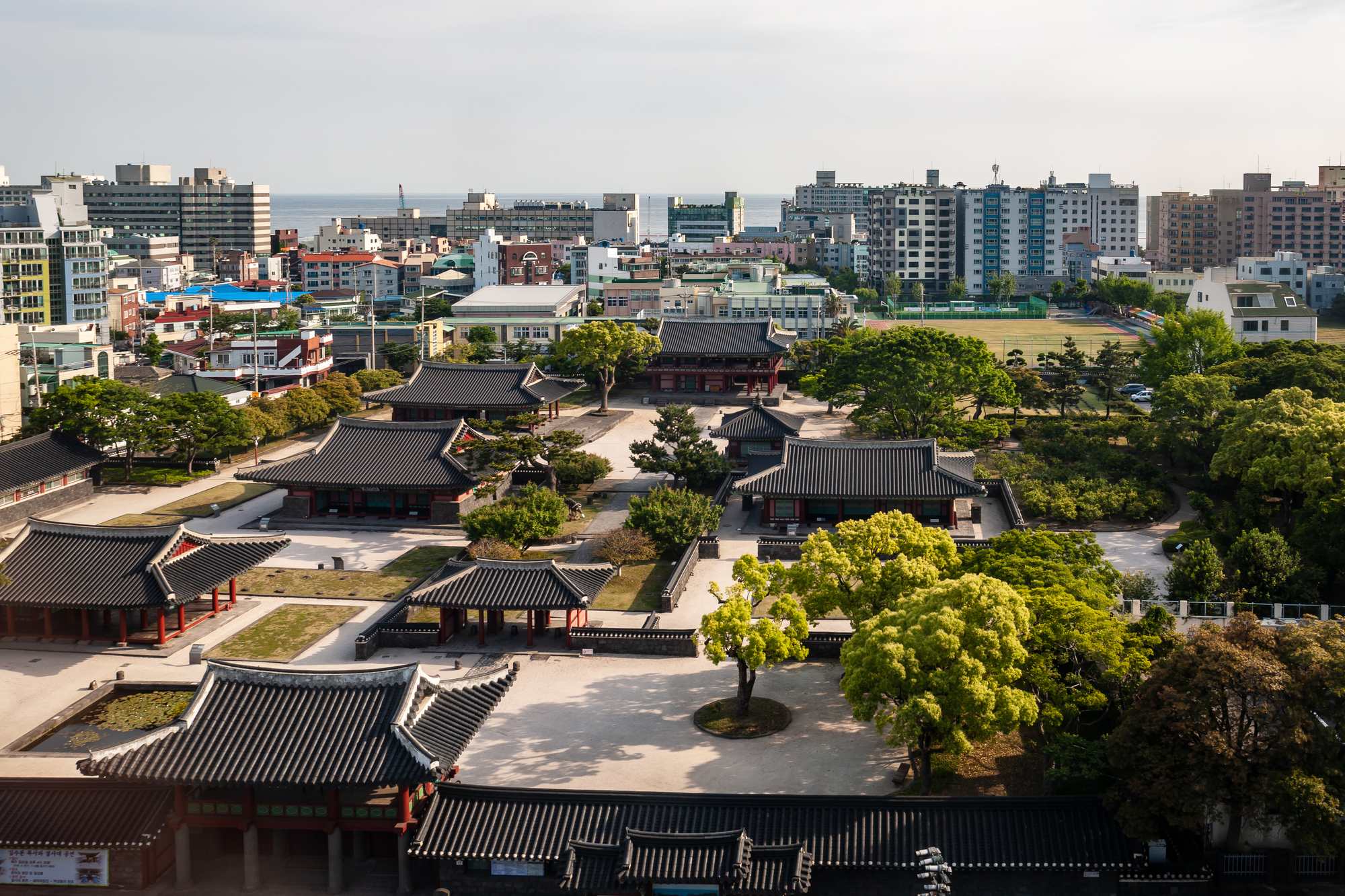 済州牧官衙は、朝鮮時代まで政治や行政など中枢機関が集まっていた場所。火災によりほとんどが焼失したが、その後再建された。兵士の修練所として建てられた観徳亭は創建当時のもの。