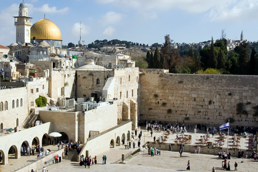 神殿の丘は、ユダヤ教、キリスト教、イスラム教の3つの宗教の聖地。金色に輝く岩のドームやアル・アクサー寺院などがあり、歴史的にも宗教的にも重要な意味をもつ。訪れる者に深い印象を残すが、信者以外は入場禁止の場所もあるので注意しよう。
