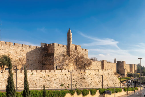 エルサレム旧市街の入り口にそびえるダビデの塔は、かつての要塞であり、現在はエルサレムの歴史を語る博物館となっている。入り口の近くにあるファサエルの塔の最上階からは旧市街を一望でき、歴史の流れを感じることができる。また、夜には光と音のショーが開催され、塔全体が幻想的な雰囲気に包まれる。