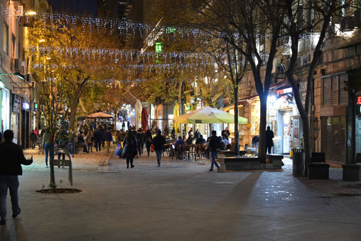 ベン・イェフダー通りはエルサレム最大の繁華街。バーでビールやワイン、カフェやレストランでグルメを楽しもう。陶磁器のギャラリーもあり、おみやげにちょうどよさそうな置物や食器がある。お気に入りの一品が見つけてみよう。