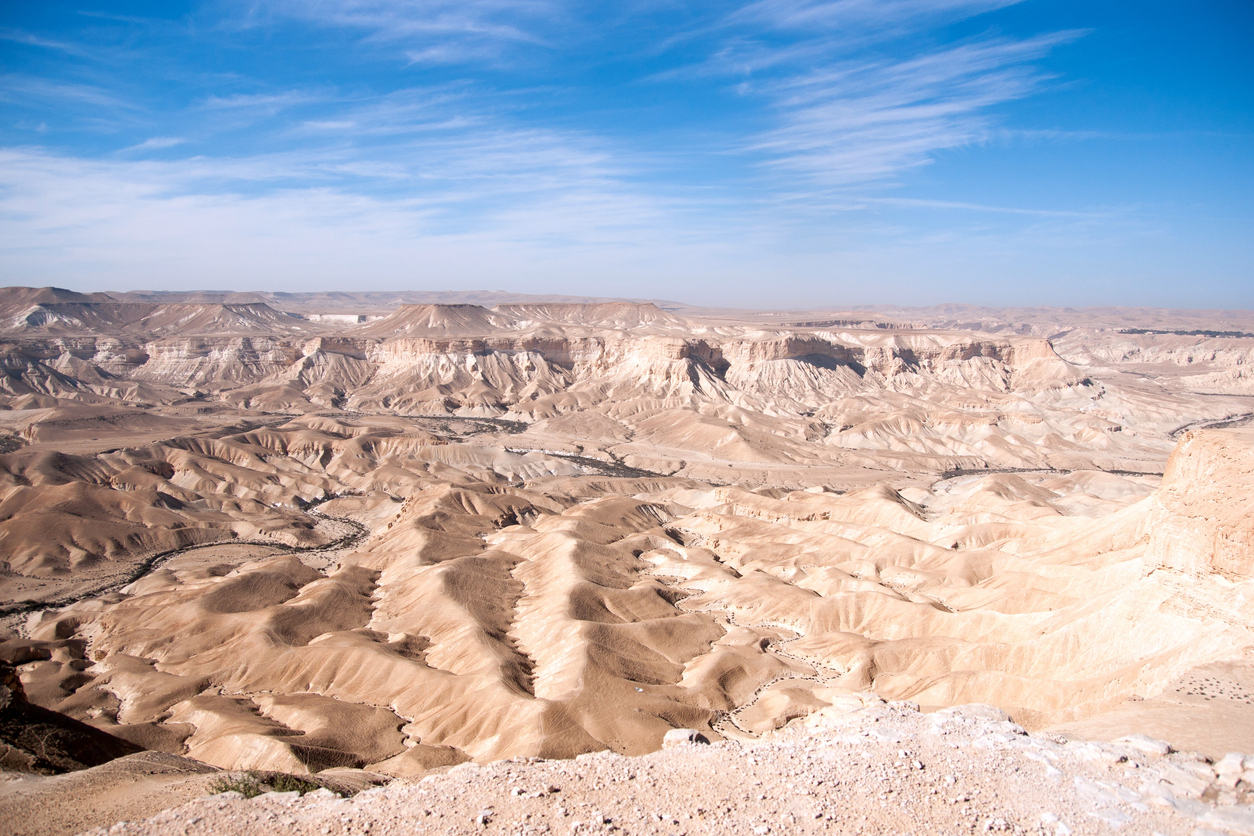 ネゲヴ砂漠に広がるラモーン・クレーターは、地球の自然の力が生み出した壮大な窪地。長さ約40km、幅約9kmもあるクレーターは地殻変動や浸食によって形作られたもので、地質学的にも非常に価値がある。夜になると満天の星空が広がり、砂漠の静寂の中で星を眺める体験は一生の思い出となるだろう。