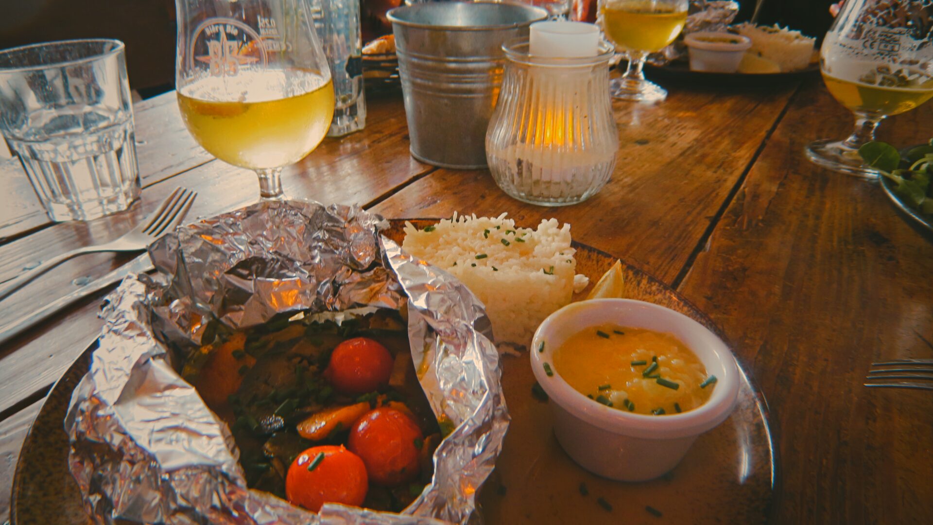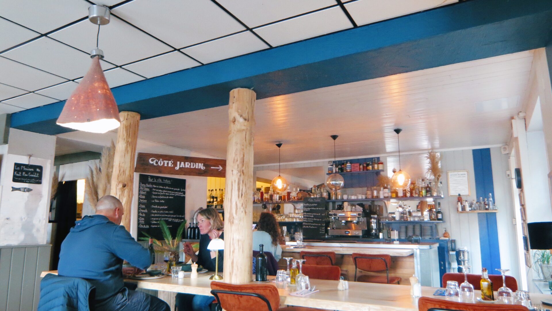 海岸からすぐの場所にあるChez Patacol(シェ・パタコー)は、海沿いのビストロらしくブルーを基調にしながらも、随所に木材が使われており、ぬくもりが感じられる空間。