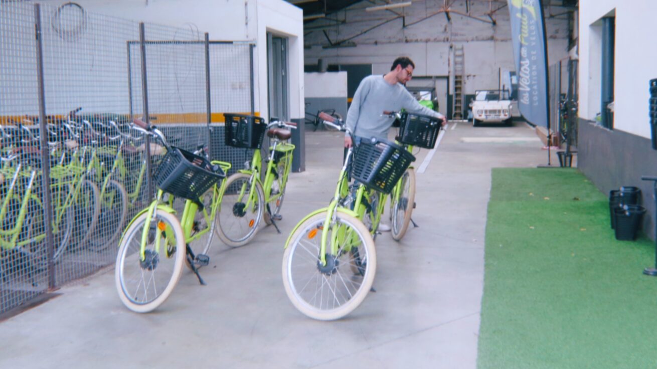 Les Vélos de Paul(レ・ヴェロ・ド・ポール)は、島を代表する風光明媚な海岸Plage des Damesから近く、黄緑色のキュートな電動自転車をレンタルできます。