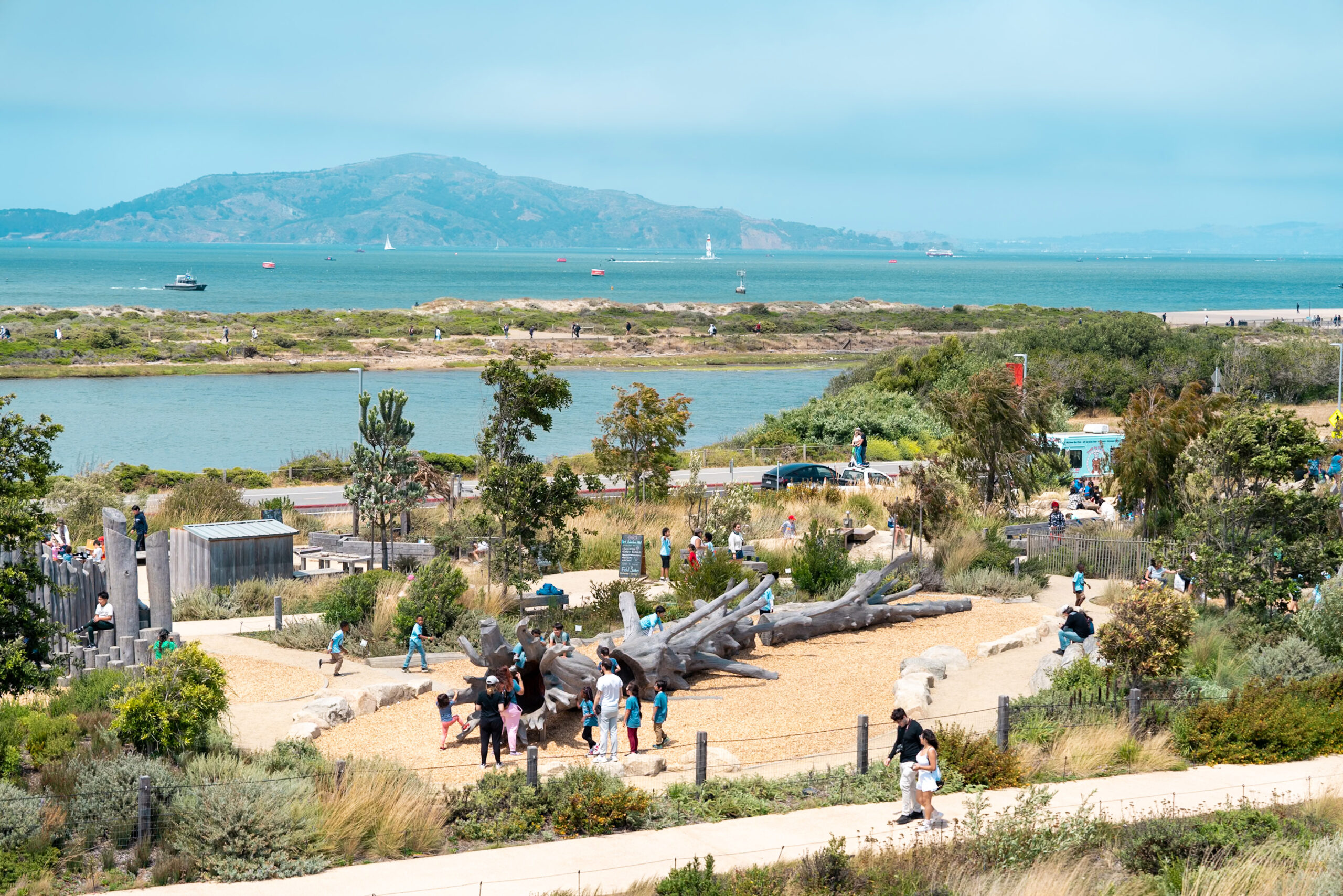全米屈指のリベラルな街に、商業施設やアトラクションではない、誰もが楽しめる開放的な新名所が誕生した。プレシディオ・トンネル・トップスPresidio Tunnel Topsだ。かつての米軍基地を貫く高速道路を地下に移設し、その上に公園施設が造成された。約5万5500平方メートルを超える敷地は、遊具のあるプレイグラウンド、エリアの自然を解説した展示室、リクライニングチェアに座りながらゴールデン・ゲート・ブリッジを眺められるクリフウオークなど7つのエリアから構成され、市民はもちろん観光客など多くの老若男女でにぎわっている。特に週末にはバラエティに富んだフードトラックも現れて、ピニックにも最適。