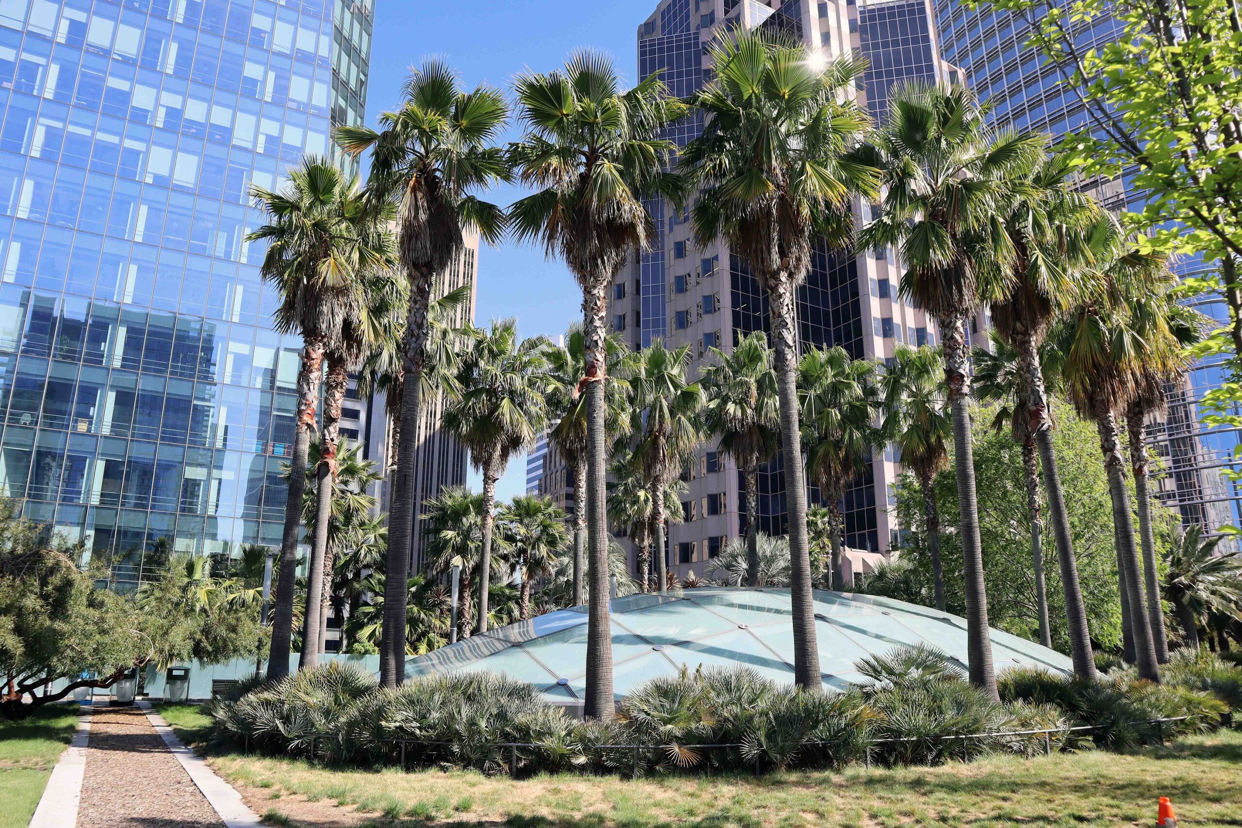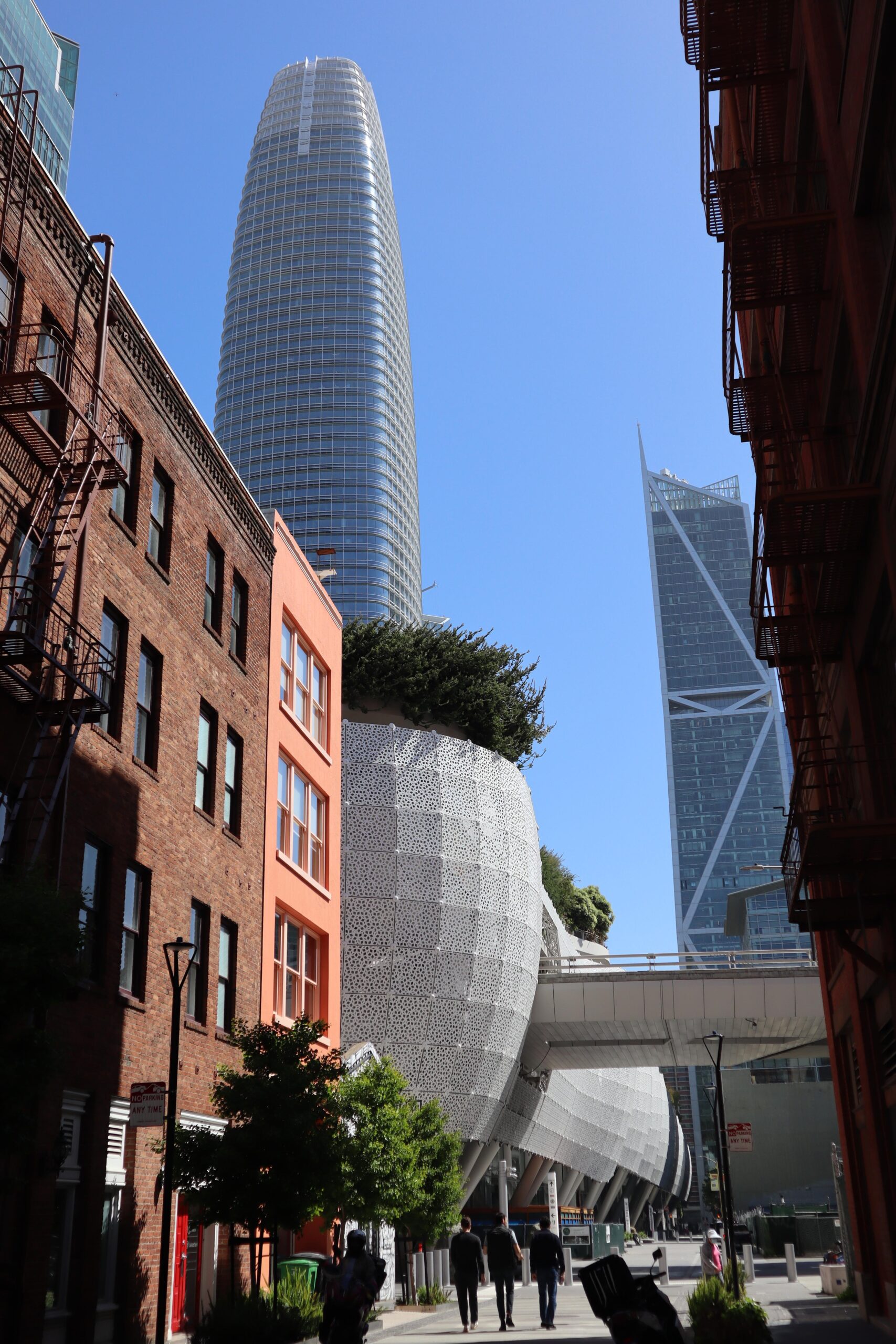 車社会アメリカで、公共の交通機関が発達する数少ない街のひとつがサンフランシスコだ。名物のケーブルカーをはじめとして、ダウンタウンと空港や郊外を結ぶ高速鉄道のバート、市内を縦横無尽に走るバスやトラムなど、中心部を歩けばさまざまな交通が走っているのを目の当たりにするだろう。それらの市内交通と全米を網羅するグレイハウンド、近郊の街とサンフランシスコを結ぶバスを集結させた巨大ターミナルがセールスフォース・トランジットセンターSalesforce Transit Centerだ。将来はロスアンゼルスとサンフランシスコを結ぶ超高速鉄道の乗り入れ予定もあるという。その4階建てターミナルの屋上に、1万6000を超える植物や樹木が植えられた植物園のような、緑豊かな公園が広がる。セールスフォース公園Salesforce Parkだ。敷地内には1周約1キロの遊歩道があり、ベンチも豊富。芝生広場もあるからゴロ寝することもできる。椅子とテーブルが置かれた中央広場には歓談する市民もいて、実に平和的。下に巨大バスターミナルがあるとは思えない別世界が広がっているのだ。先人たちが育んできた緑が次々に伐採される東京とは対照的に、行政も企業も積極的に緑化を推進する姿には頭が下がる。ぜひ、バスを降りたら公園にも足を運んで、都会のオアシスでリラックスしてほしい。