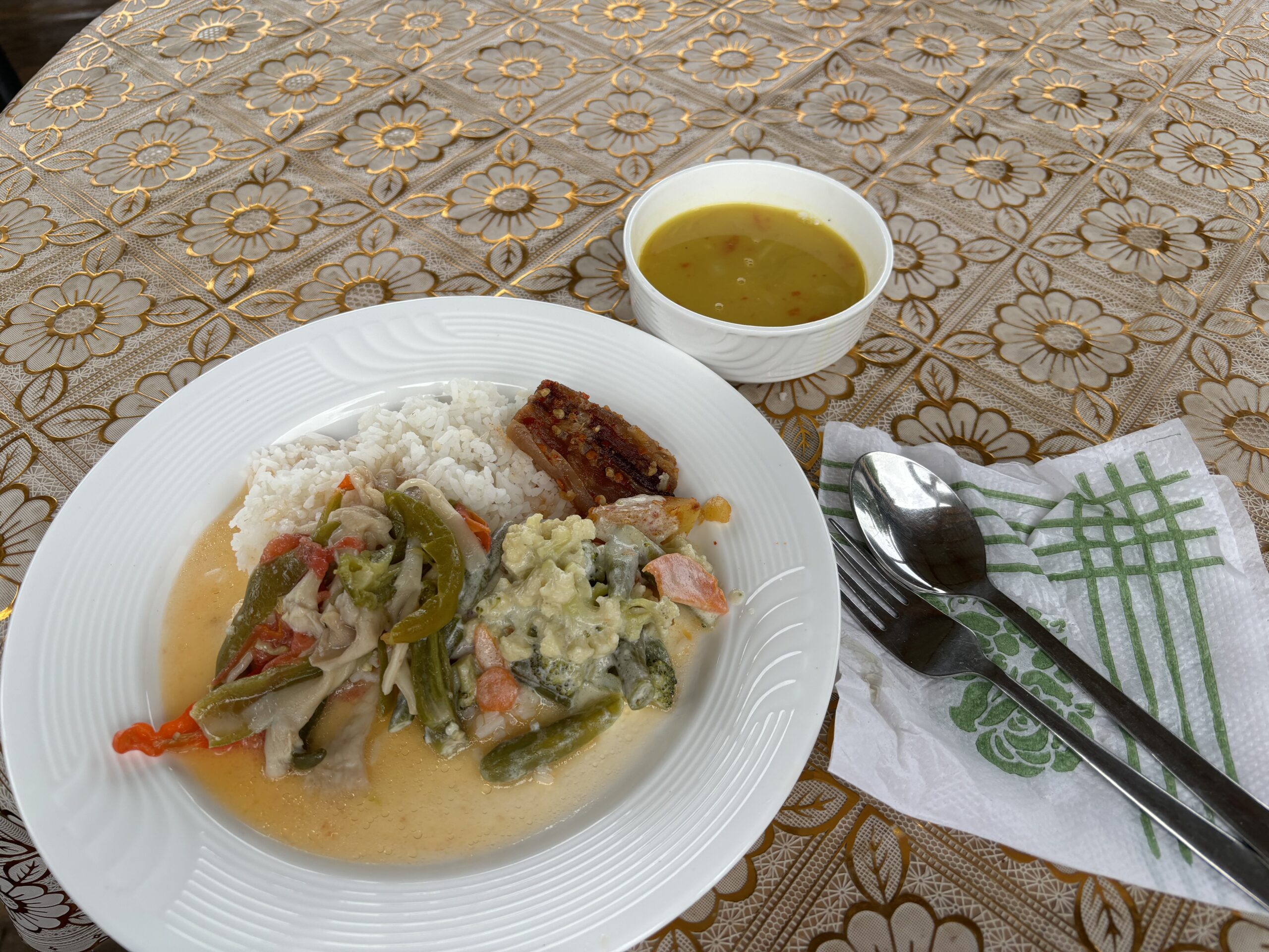 到着後、すぐに食べる機会を得たブータン料理の「エマ・ダツィ」もこれまた記憶に残る辛さです。周辺の南アジア諸国にあるカレー料理とは一線を画し、名前の通り、エマ(トウガラシ)&ダツィ(チーズ)の煮込み料理です。「ブータン人にとってトウガラシは野菜ですから」と軽く説明されたのですが、その辛さに圧倒されました。たまにジャガイモやキノコが入っているのでこれは大丈夫かと思いきや、辛さは同じです。本当に激辛です。