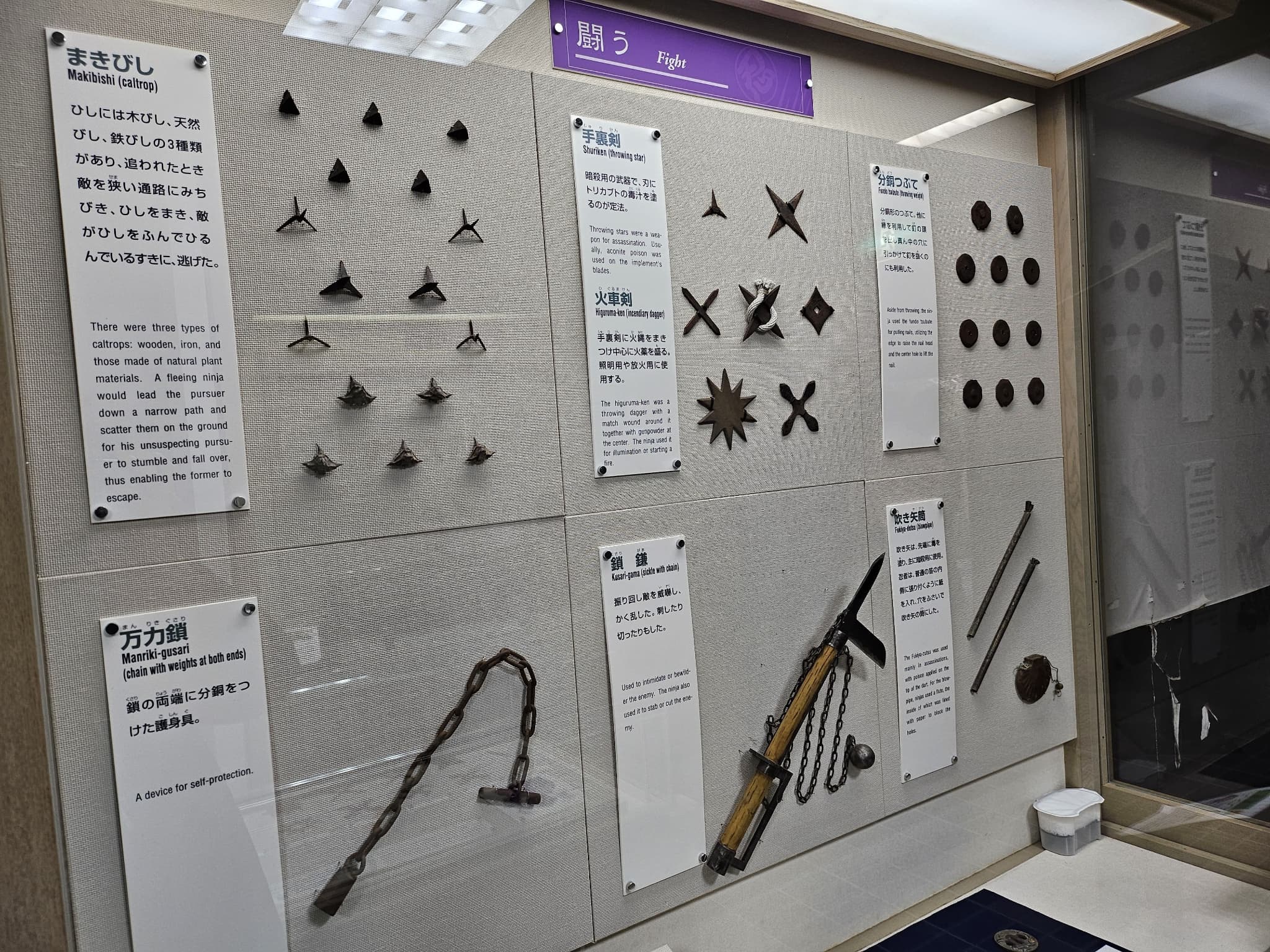 さらに、忍者体験館、忍者伝承館には手裏剣などの忍具や歴史などの資料が展示されています。からくりの説明文や、資料にも英語が併記されていて、外国の方にも大盛況なんだそう! そして、目玉の忍術実演ショーでは、伊賀忍者特殊軍団・阿修羅が観客の目の前で手に汗握る忍者ショーを繰り広げます。なんと阿修羅は、台湾や韓国、アメリカなど世界で引っ張りだこの忍者軍団で、世界中で出張ショーやテレビ番組出演などをされている人気者! 海外旅行に行った際には、現地の方とここで学んだ忍者の話で盛り上がりたいと思います。
