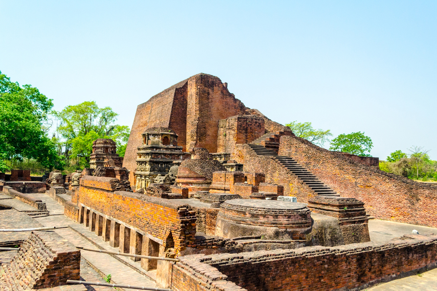 ナーランダ・マハーヴィハーラの遺跡は、インドのビハール州に位置する広大な仏教大学の遺跡。5世紀から13世紀にかけて栄えたこの大学は世界最古の大学のひとつであるとされ、かつて多くの学者や学生が集まる仏教学の中心地であった。遺跡には11の僧院跡と14の寺院跡が残っており、多くは土台や壁の一部のれんがしか残ってないが、近隣には当時の美術作品を収めた博物館もある。アクセスは、ラージギルからバスで行くことが可能。ビハール・シャリフ行きのバスに乗り、約20分ほどで到着する。