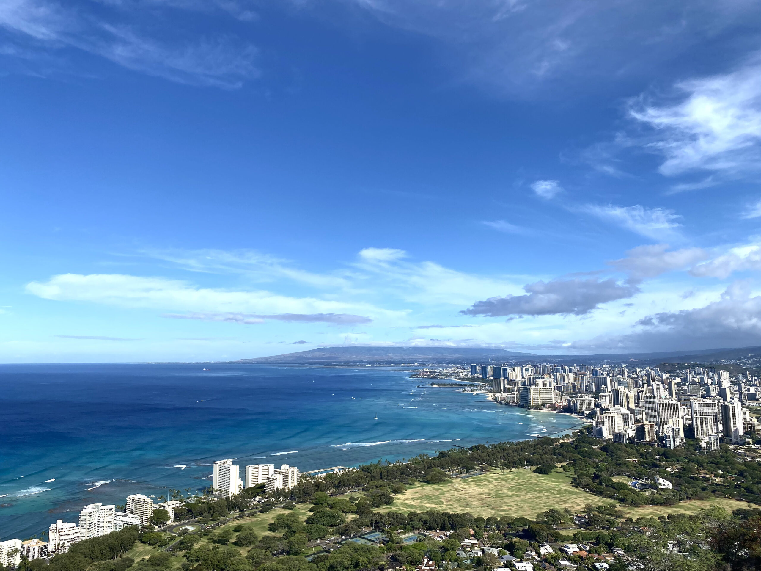 片道40分ほどで登れる緩やかなトレッキングコースなので、初心者でも気軽にチャレンジできますよ。頂上からはワイキキの街並みや、青く輝く海のグラデーションが広がる絶景が! 達成感とともに眺める景色は、まさに息をのむ美しさです。