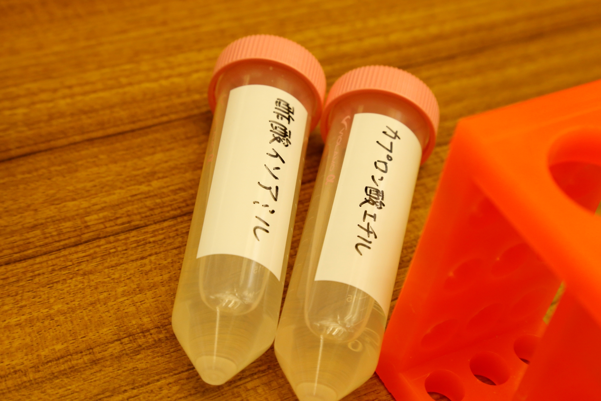 ④の「静岡酵母」は、こちらの「静岡県工業技術研究所沼津工業技術支援センター」と「静岡県酒造組合」とで共同研究によって開発された静岡県オリジナルの清酒酵母。実際に酵母の香りをかいでみると、フルーツのような上品かつ穏やかな香りが感じられました。静岡県はマグロやカツオなど、うま味成分が多い魚が多く取れるため、あっさりした酒が合うのではと考え、そんな静岡の食材に合う酒になるように酵母を設計しているのだとか。「静岡酵母」はすでに7種類の酵母が開発、実用化されていますが、現在も新たな酵母の研究・開発に取り組んでいるのだそうです。