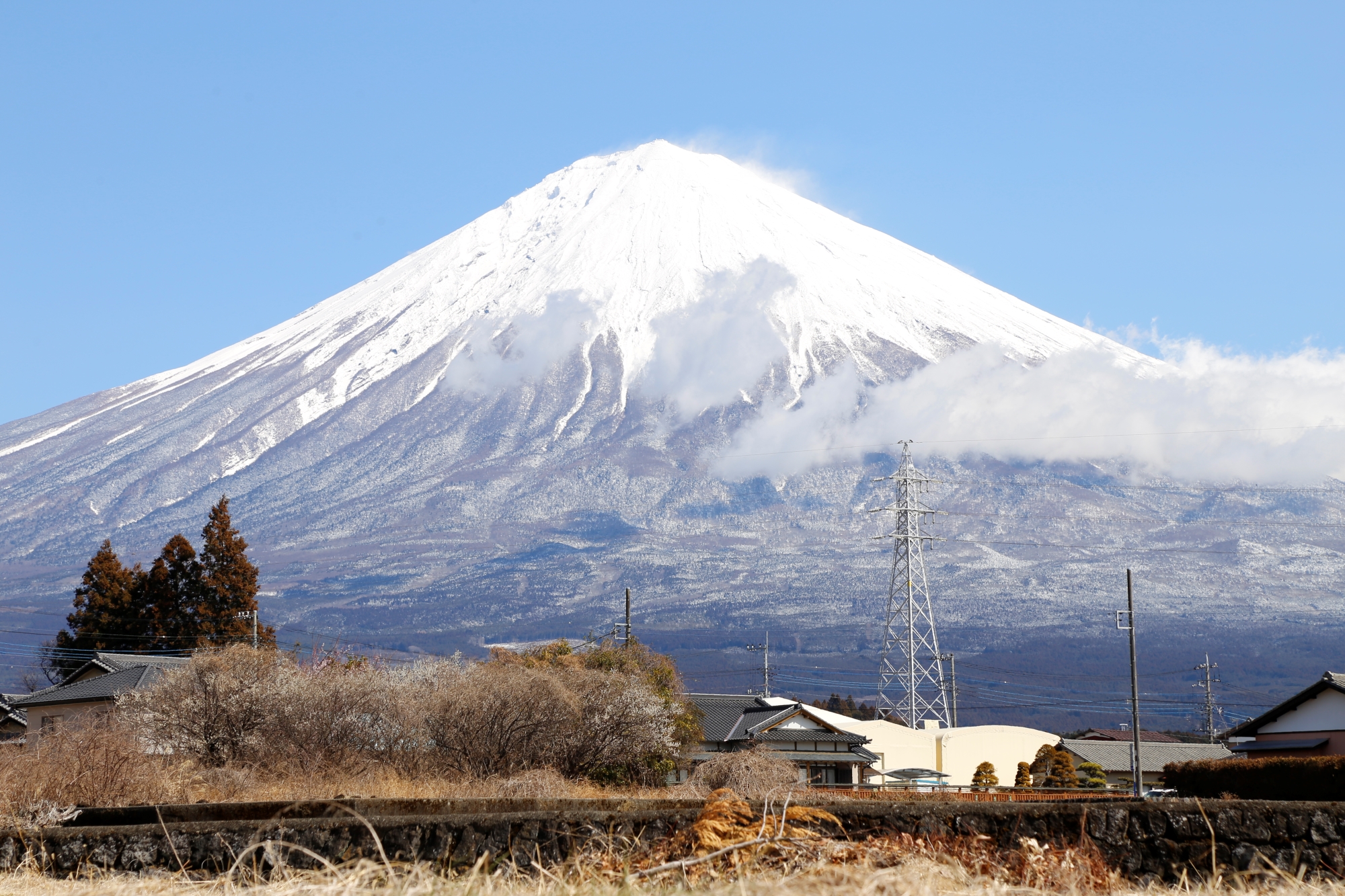 酒蔵での説明後、屋上に出ると、美しく冠雪した富士山が姿を現しました。牧野さんによると富士山の中腹のほうまで雪が積もり、日本神話でもっとも美しいとされる富士山ゆかりの女神・コノハナサクヤヒメの姿に見えると雪が豊富=水が豊富=酒米が豊作になる=いい酒ができると昔からいわれているそう。目を凝らしてみるとなんとなくコノハナサクヤヒメのように見え(!)、今年の豊作を確信せずにはいられませんでした。