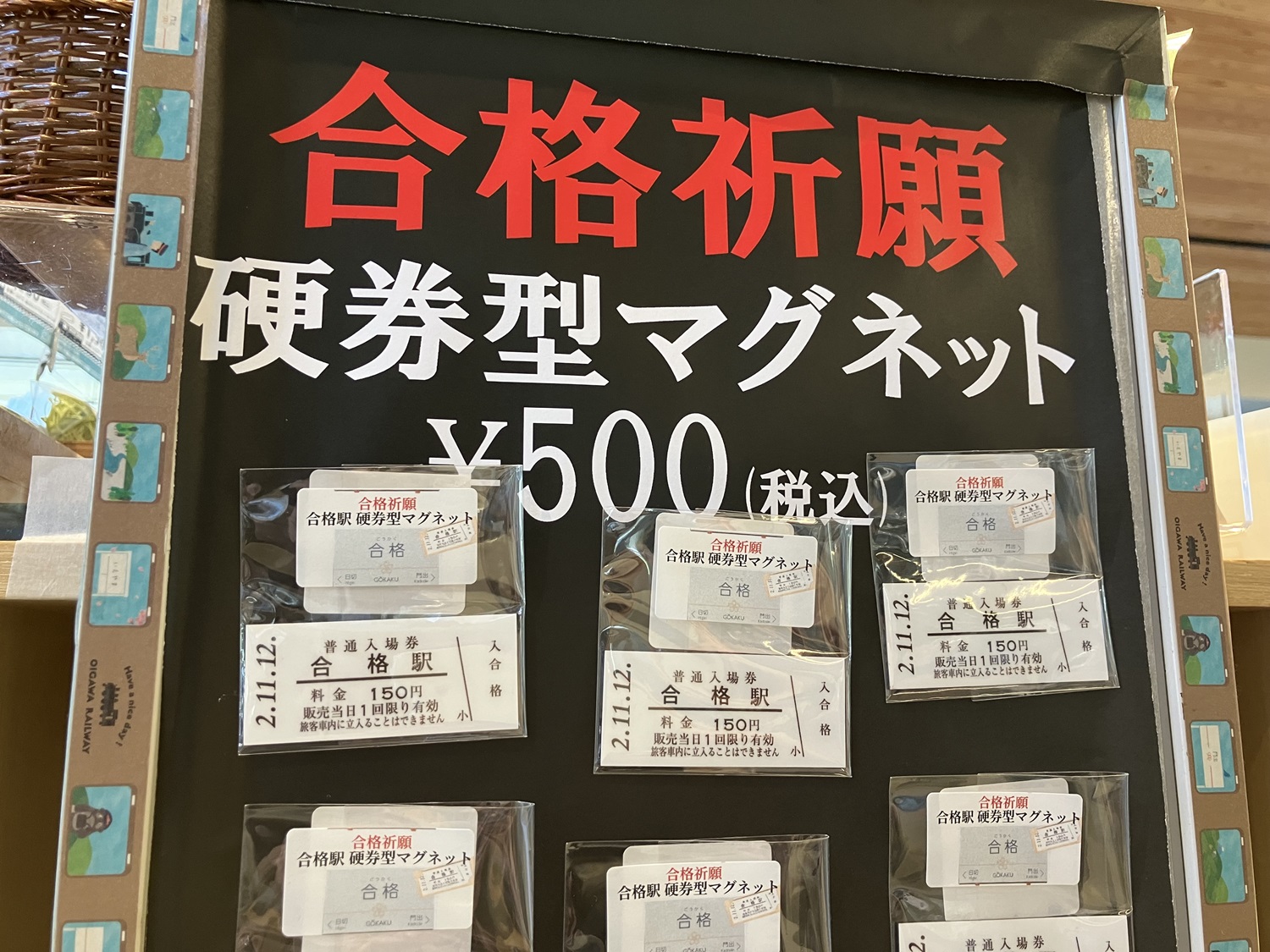 さらに、門出駅の縁起のよさにあやかって、切符型絵馬というものも発売されていました。門出駅の隣の駅の名前が合格駅というため、受験や試験が控えている人にはぴったり。こちらを購入した人は、展示されているSLの下を特別にくぐることができるそうです。絵馬でもあり、チケットでもあるというのはおもしろい。こちらの絵馬は、お焚き上げもSLの中で行っているそうで、どこまでもSLづくしという徹底ぶりがすばらしいです。
