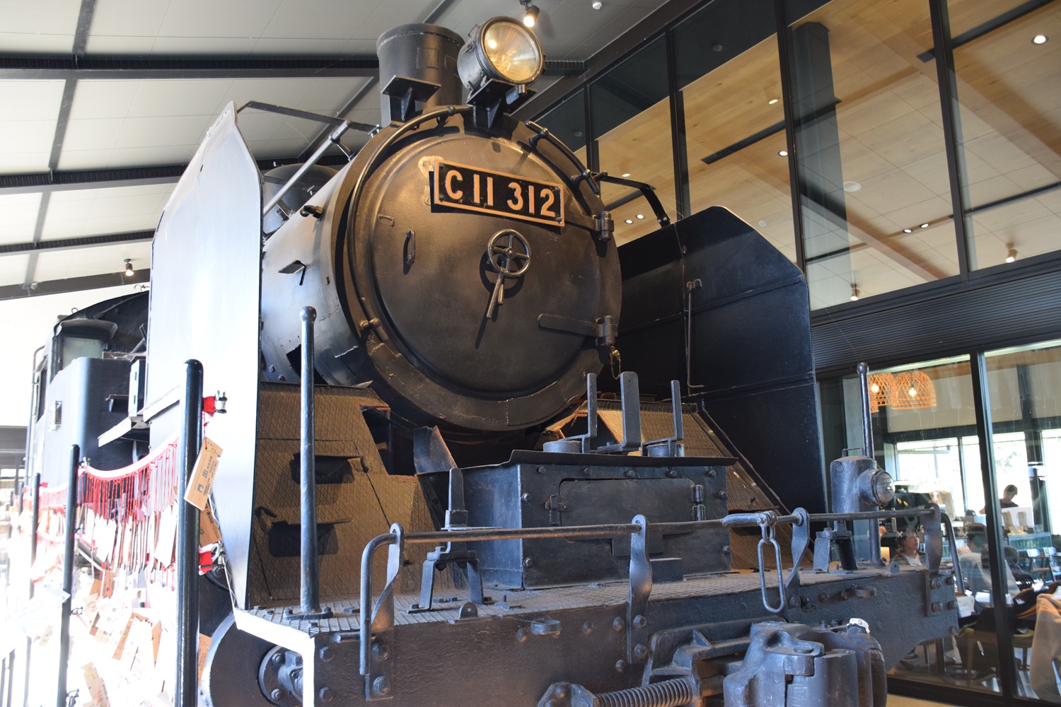 見どころの多いKADODE OOIGAWAの中でも圧倒的な存在感を放つのは、SLの復元展示!こちらはC11形312号機というSLで、2007年まで大井川鐡道で実際に営業運転していたものを、修繕して展示しているそうです。こんなに間近でじっくりとSLを見れる機会はなかなかないので、貴重な体験です。