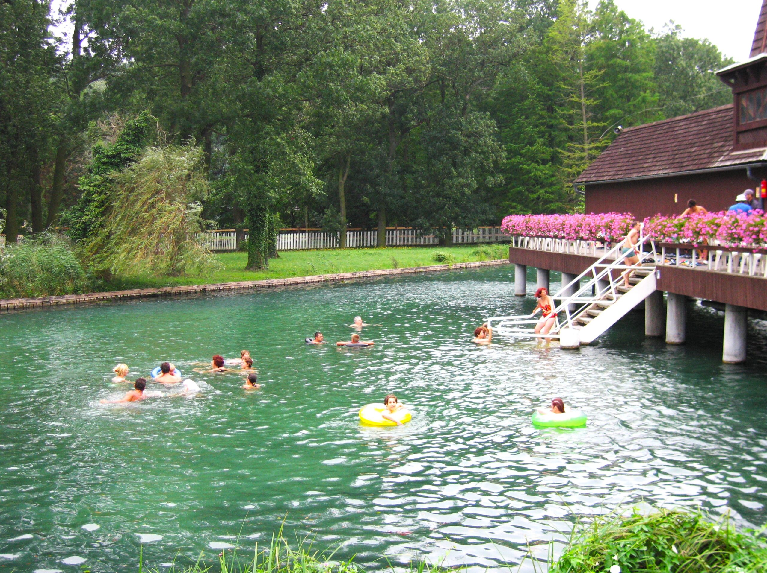 ハンガリー西部、バラトン湖の北西にあるヘーヴィーズは、湖全体がぬるめの温泉です。世界的にも珍しい温泉なので、一年を通して観光客でにぎわいます。湖は深いので、泳ぎに自信のない人はレンタルの浮き輪を利用するか、湖のなかの止まり木につかまるのがおすすめです。施設は湖上に浮かぶように建っており、硫黄臭が強めの内風呂もあります。