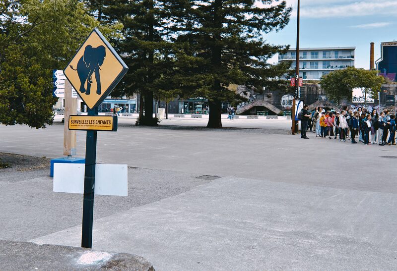 ナントを歩いていると、道に引かれた緑のラインをよく見かけます。このラインは、町に点在するアート作品へと導いてくれる道標。人通りが多い道だとラインがかすれ気味だったり、ニセモノのラインが落書きされていたりするのはご愛敬!正しいラインを見失わないよう時々足元を確認しつつ、ラインをたどってみてください。