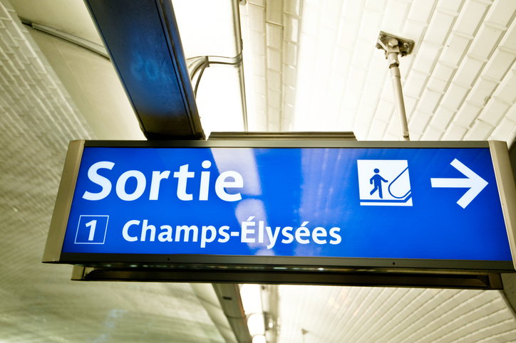 「ソルティ(Sortie)」と書かれた表示をたどって出口まで向かいます。パリのメトロでは出口に改札がないので、自動もしくは手動のドアを抜けて改札外へ出ます。
