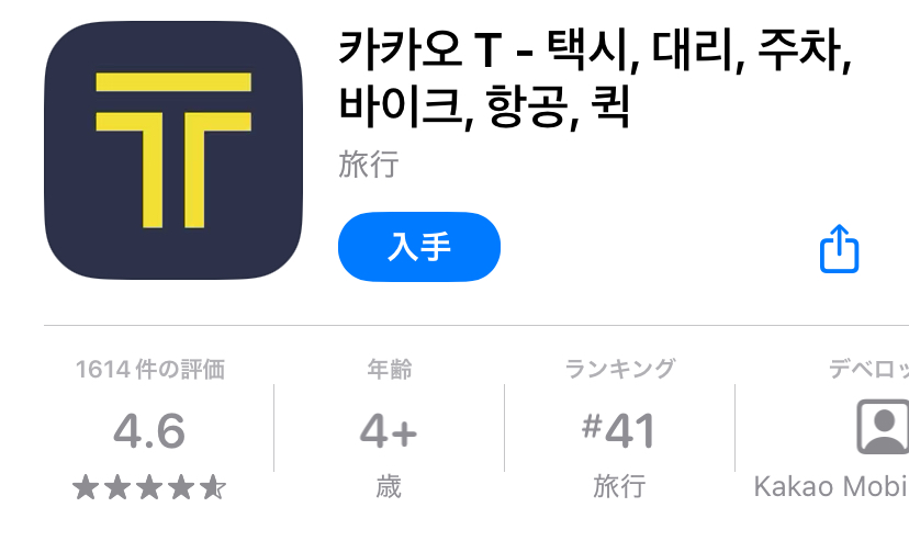 まずは、カカオタクシーのアプリをApple StoreやGoogle Playから無料でダウンロードします。