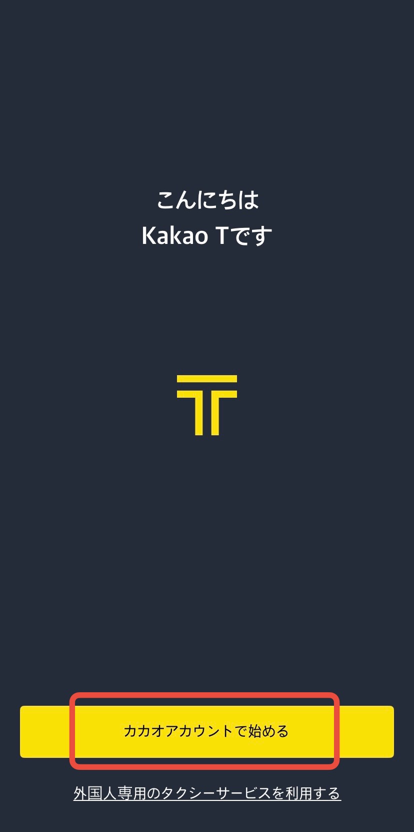 カカオタクシーを利用するには、アプリのインストール後、カカオアカウントの登録が必要となります。「カカオアカウントで始める」をタップし、左下にある「新規登録」からカカオアカウントを登録します。