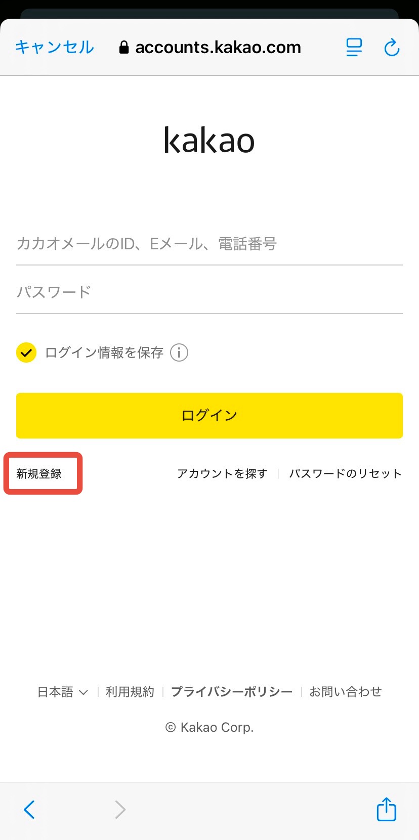 すでにカカオアカウントを持っている場合は、登録済みのカカオIDやパスワードでログインすると、自動的にアカウント情報が反映されます。