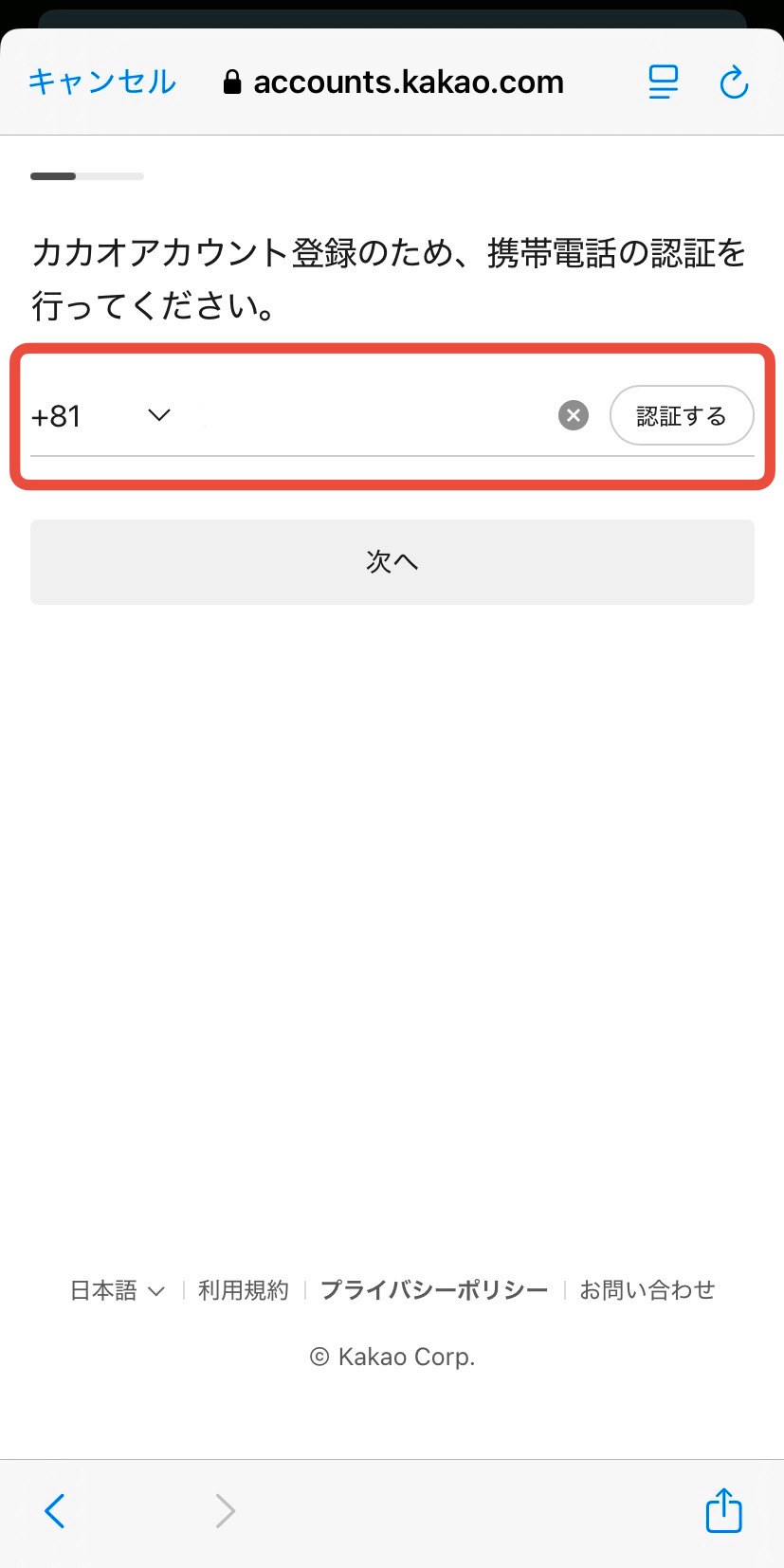 ここからは、カカオタクシーのアカウント登録方法を解説します。利用には、カカオアカウントの登録が必要になり、登録はSMS(ショートメッセージ)を受信できる環境で行う必要があるので、旅行前に日本で済ませておくのがよいでしょう。以下の画像を参考にしながら登録を行ってみてください。
