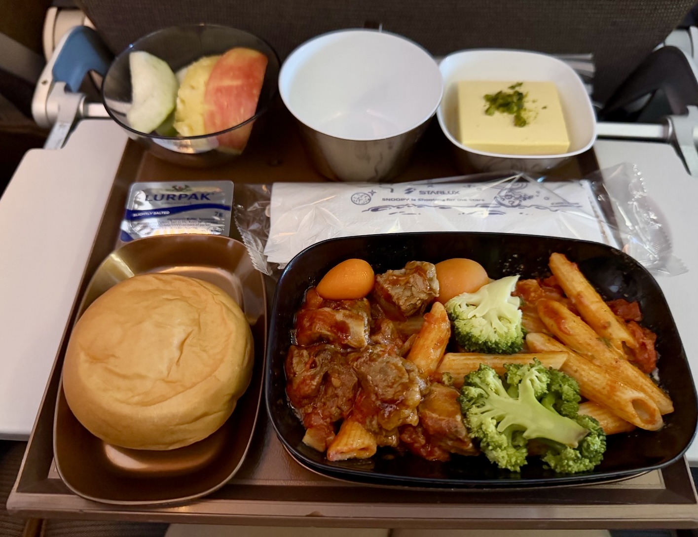 プレミアムエコノミークラスには前菜が付くなど、エコノミークラスよりグルメ度が高い印象ですが、どちらもおいしくて大満足で完食。ごちそうさまでした!